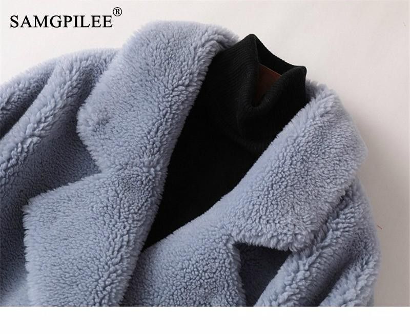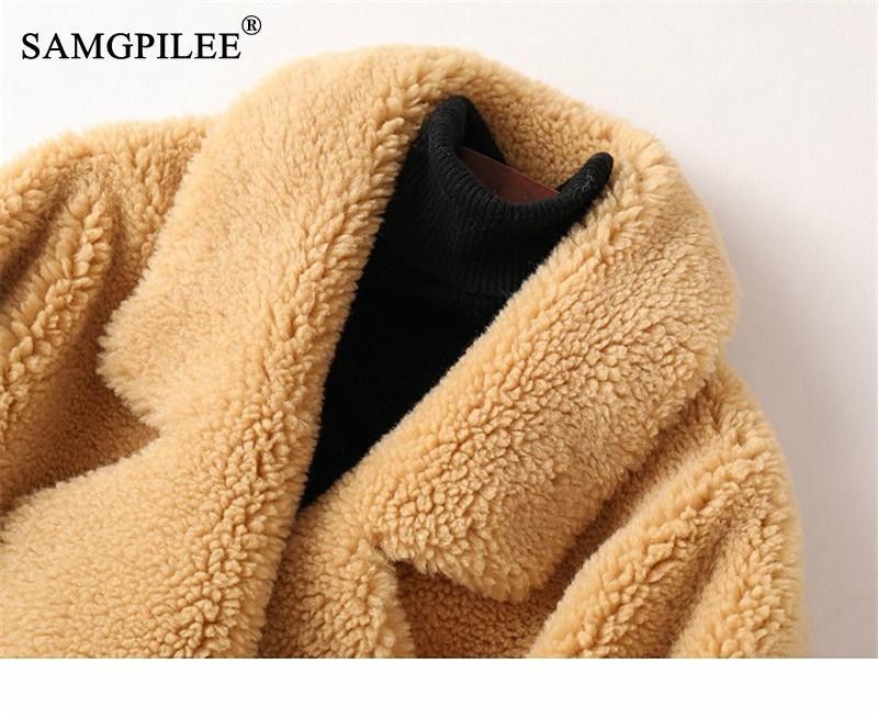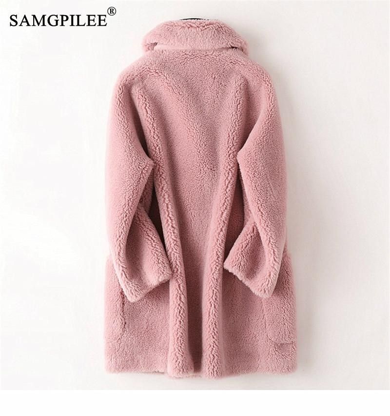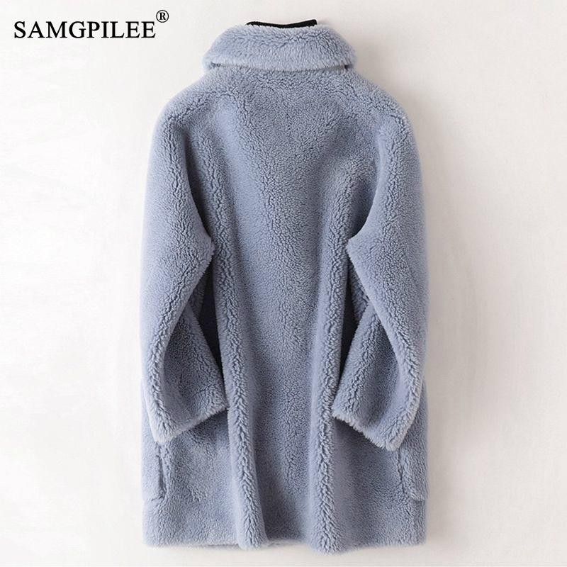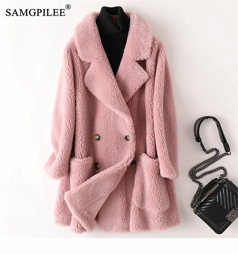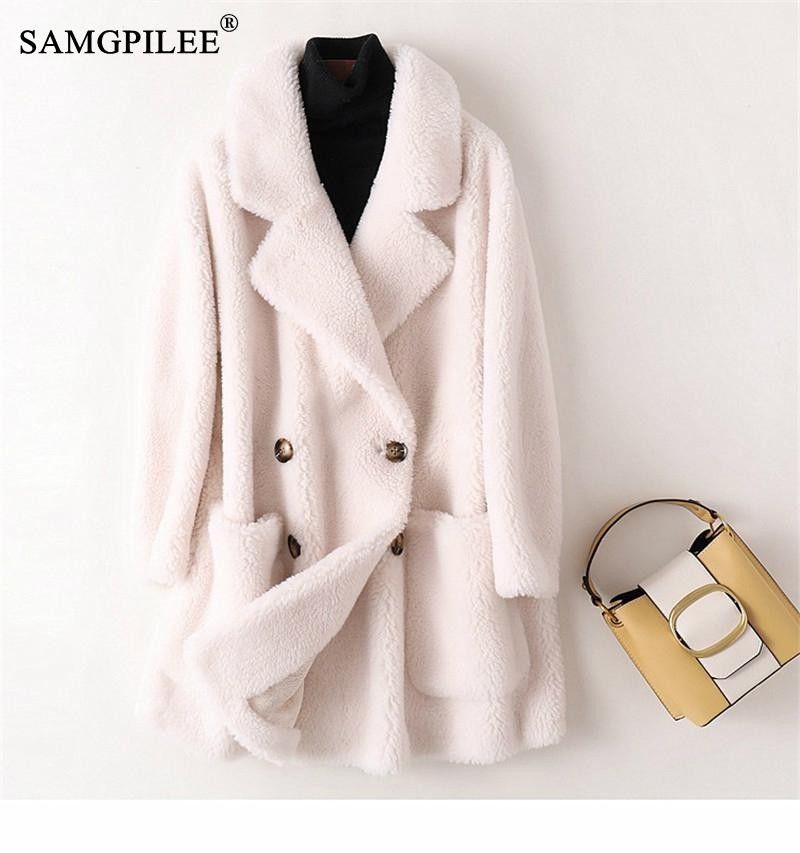 Gerçek Kürk Ceket Yüksek Kalite Avustralya Bayan Yün paltolar Kalın Sıcak Zarif Gevşek Büyük Boy Uzun Dış Giyim Kış Ceket Kadınlar Için