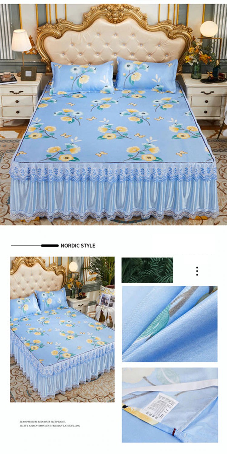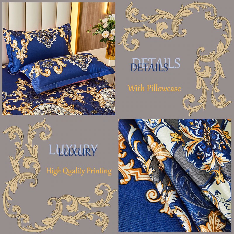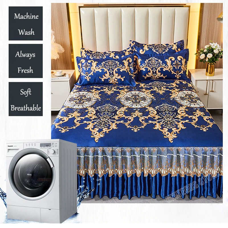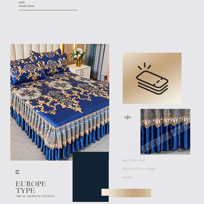 Kraliyet Mavi Yatak Örtüsü Katlanabilir Çarşaf Moda Yatak Çarşafları Altın Dantel Çarşaf Makine Yıkanabilir Yatak Örtüsü Kraliçe Kral