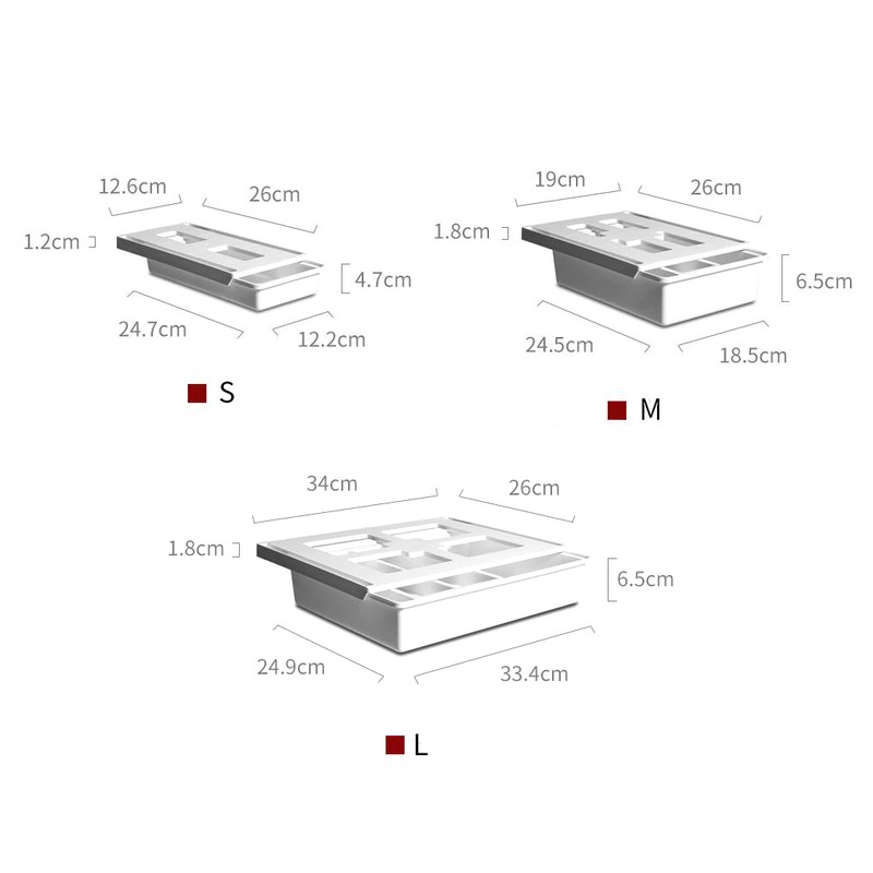 Çekmece kalem tepsisi, saklama kalemleri, cetveller, pusulalar, kağıt havlular, makas, cep telefonları vb. Için idealdir.