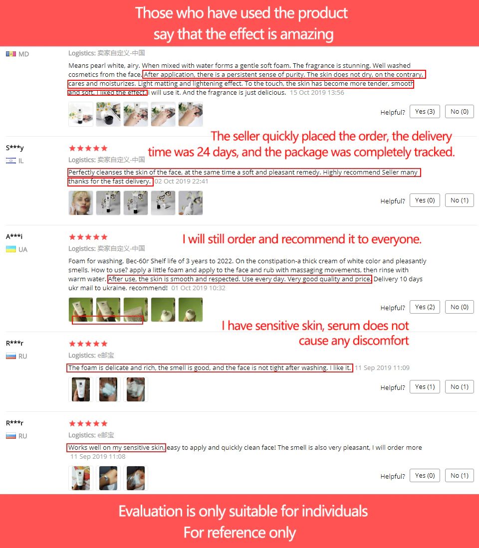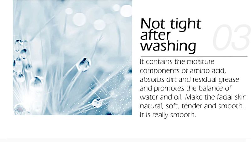 ● Temizlik Yoğun ve zengin köpük ve güçlü temizleme kuvveti Hafif günlük kozmetik kaldırmak ve iyi temizlik gücü var ● Nemlendirici seviye Temizledikten sonra, cilt pürüzsüz ve sıkı değil Kullandıktan sonra, cilt nem ve hidratları kilitler. Cilt ferahlatıcı olur ve yağlı değildir.