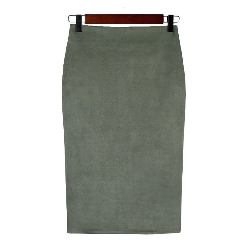 Seksi Çok Renkli Süet Midi Kalem Etek Kadın en yeni Moda Elastik Yüksek Bel Ofis Bayan Bodycon Etekler Saias