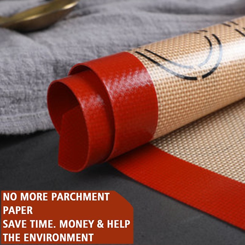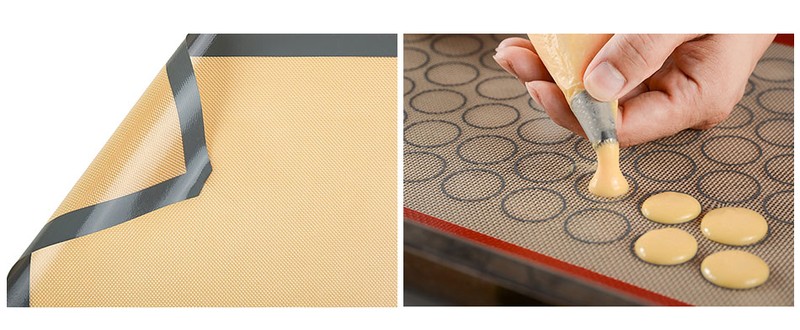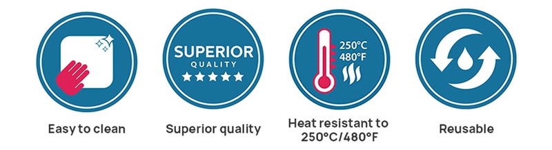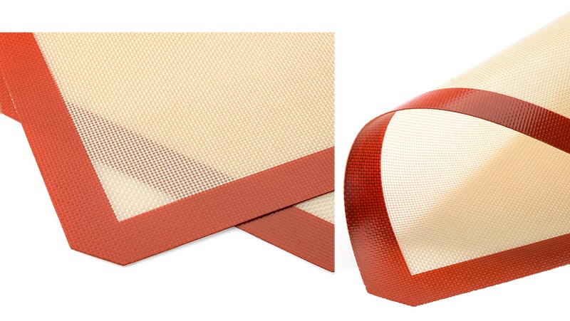 TESHOM pişirme paspasları fiberglas örgü ve en kaliteli gıda sınıfı silikondan yapılmıştır.