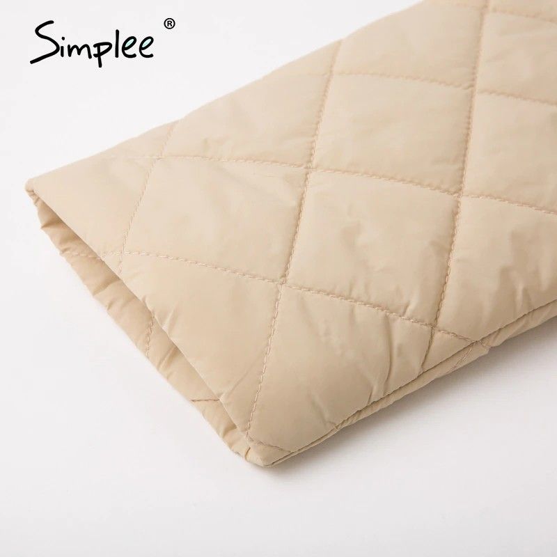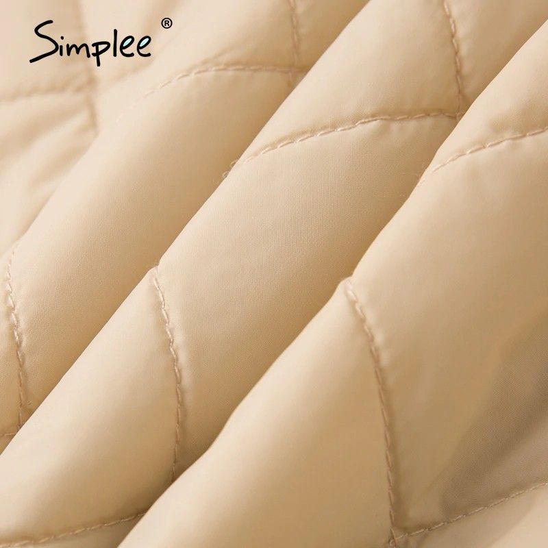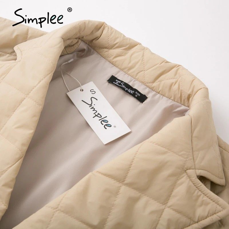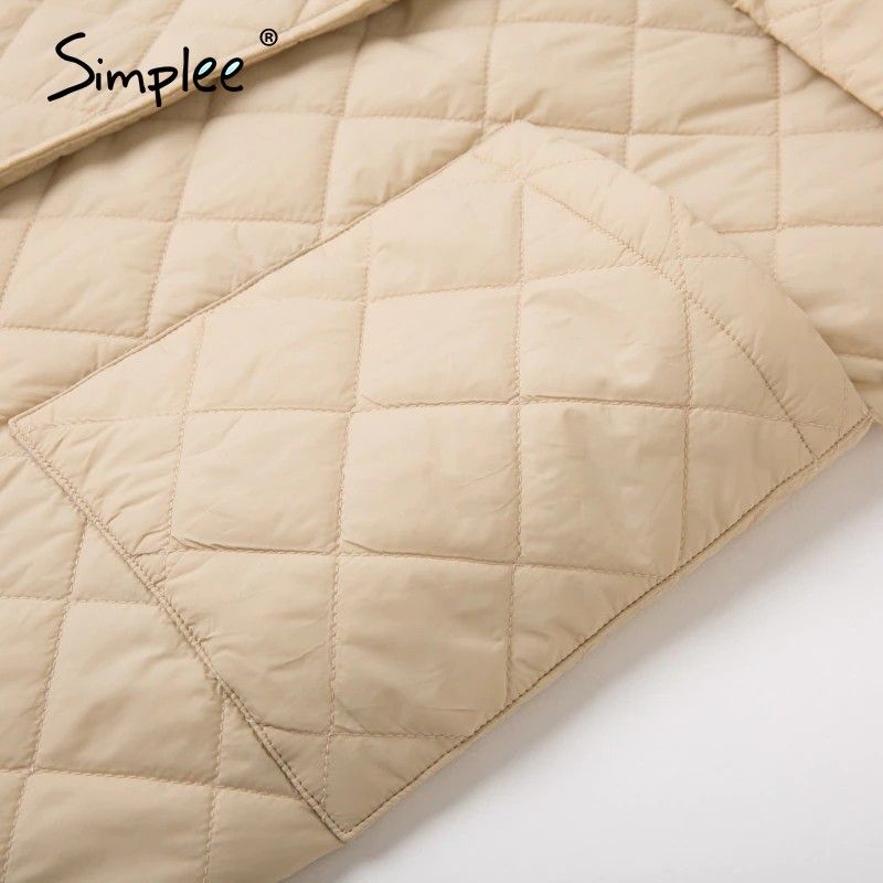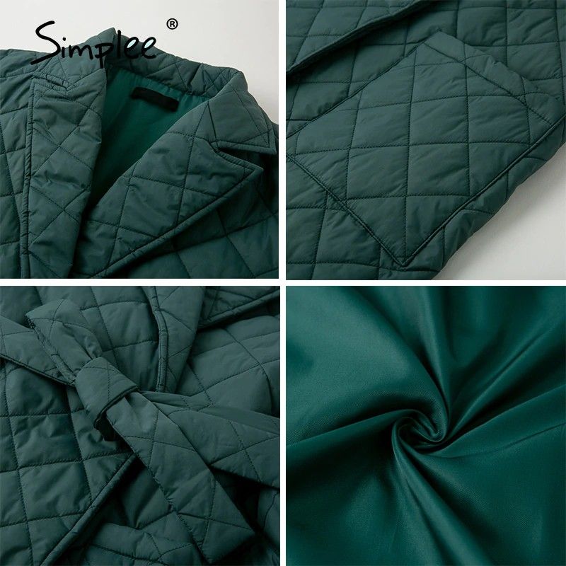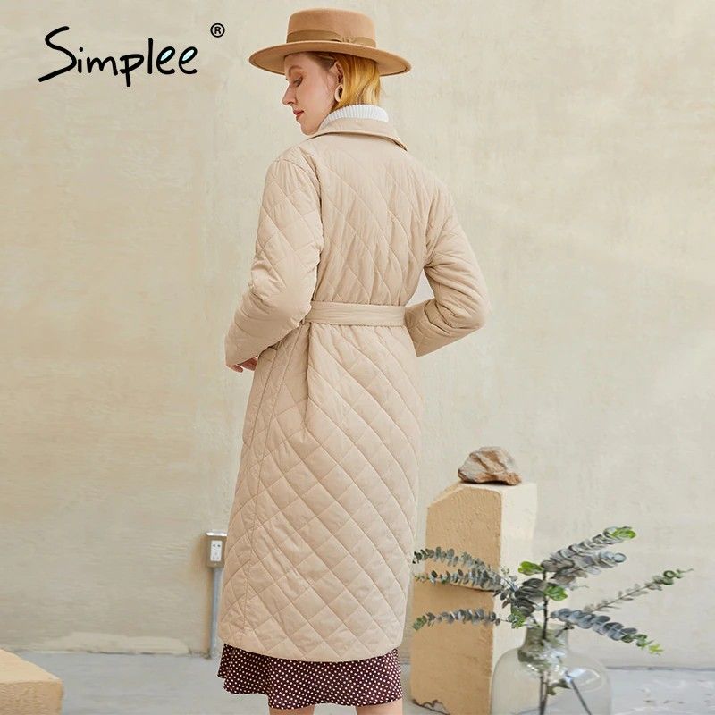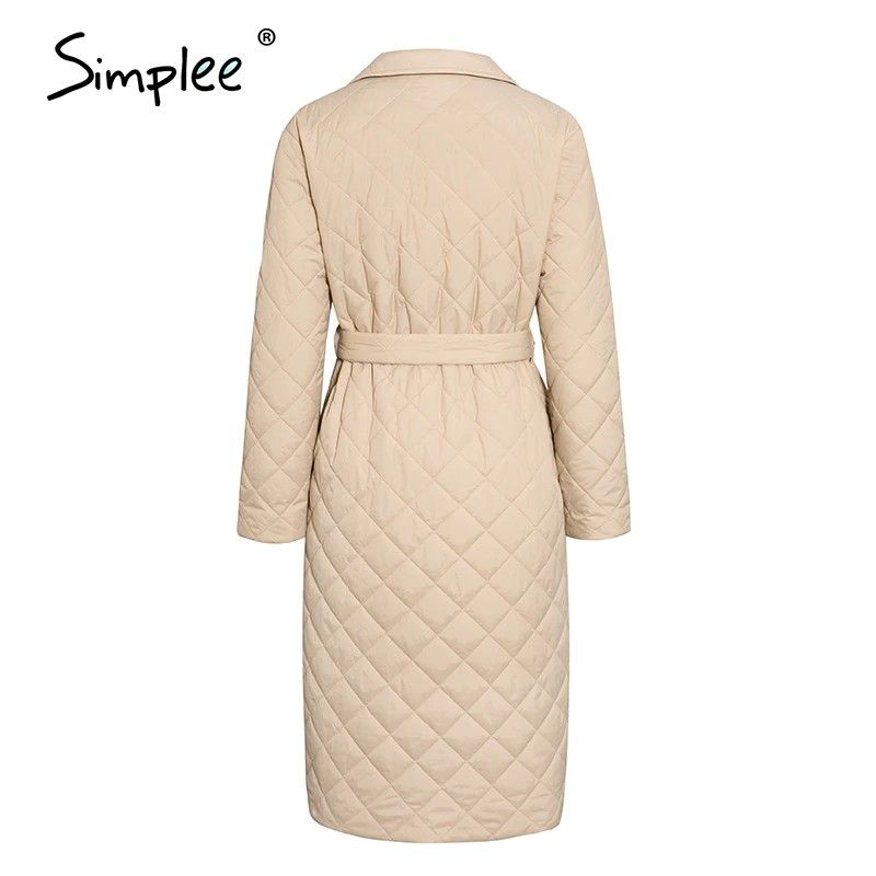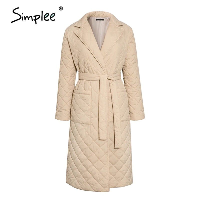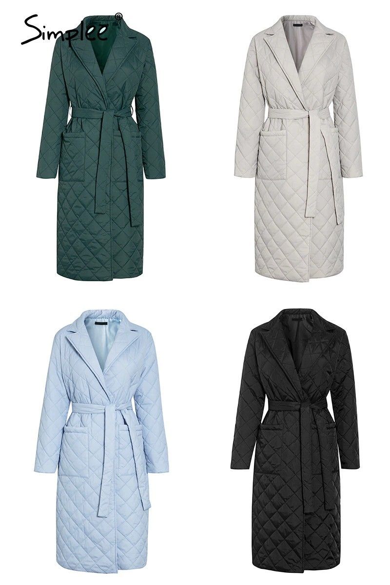 Simplee Uzun Düz Kış Ceket Eşkenar Dörtgen Desen Rahat Sashes Kadın Parkas Derin Cepler Özel Yaka Şık Giyim