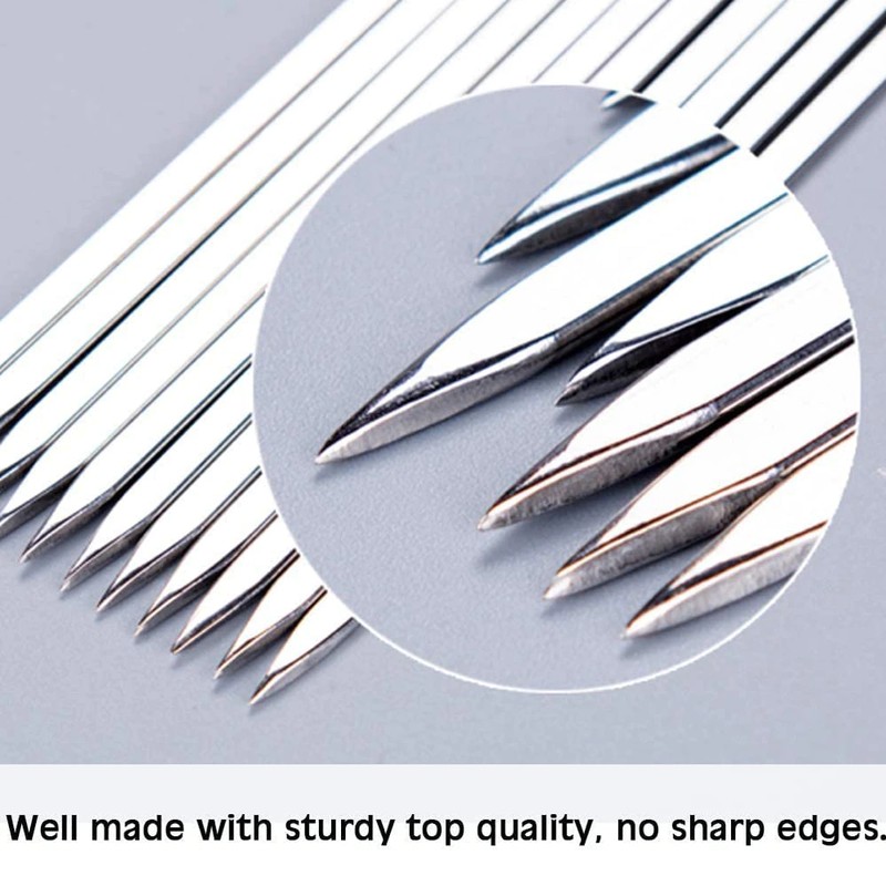 Kabob şiş bıçağı düz ve geniştir. Düz barbekü çubukları, ızgara üzerindeki şiş kebabı şişlerini çevirirken ya da etrafta dolaşırken, çiçekli yiyecekleri durdurur. Paslanmaz çelik barbekü şiş tam rotasyon için izin verir, böylece gıda her tarafta eşit olarak ısıtılabilir ve terbiye edilebilir. Bu kebap şişlerinin açılı uçları, yiyecekleri parçalamadan kolayca birikmenize yardımcı olur. Ama çok sivri değil, böylece kendini kazıklamayacaksın.