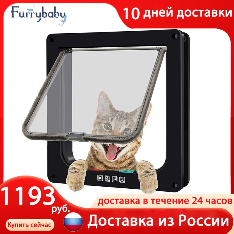Akıllı Pet Kapı 4 Yönlü Kilitleme Güvenlik Kilidi Abs Plastik Köpek Kedi Flap Kapı Kontrol Anahtarı Yönü Kapılar Küçük Pet Malzemeleri