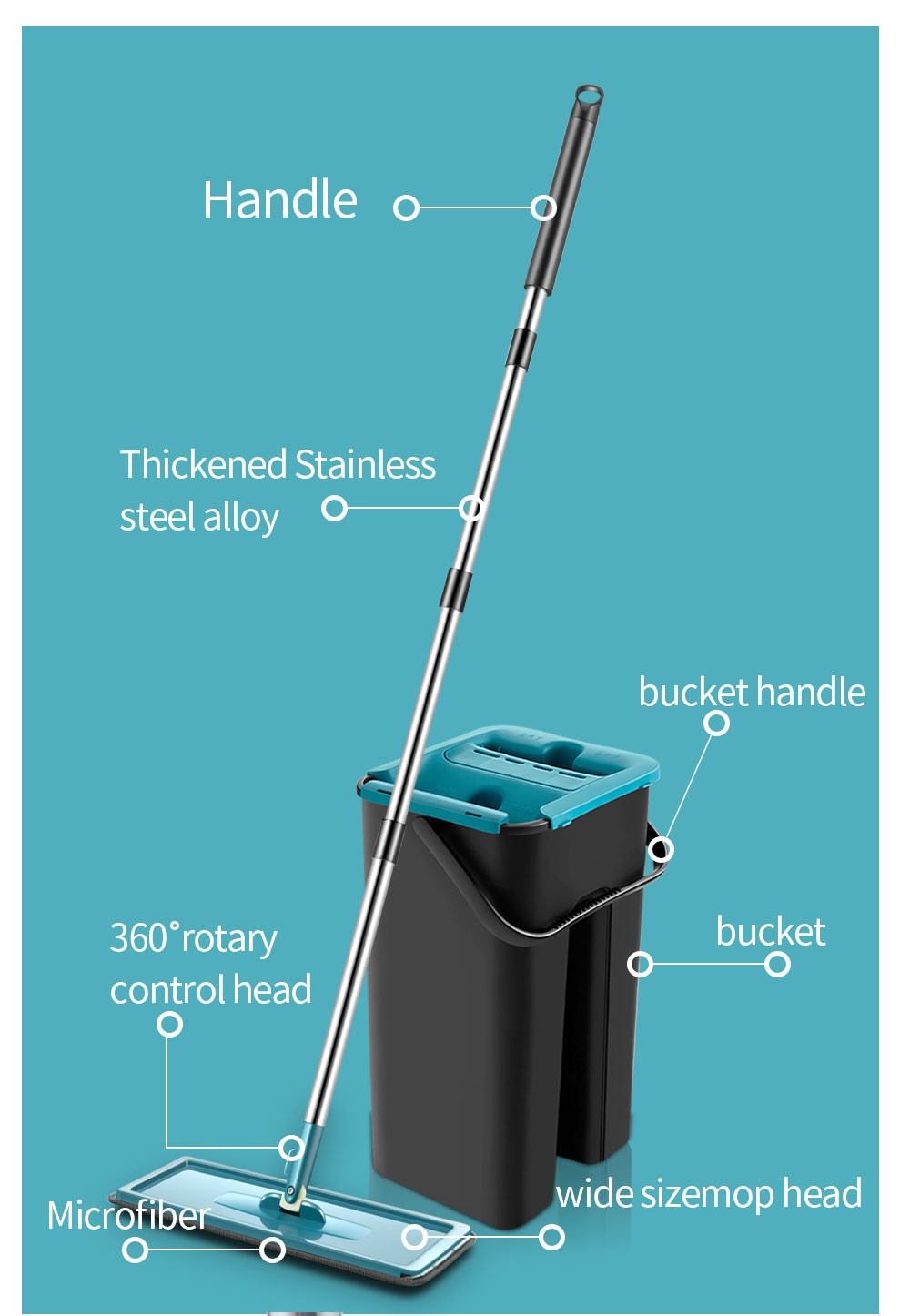 Sıkma Paspas Kova Ile 360 Döner El Ücretsiz Yıkama Düz Temizlik Paspası Paspas Mikrofiber Pedleri Islak Kuru Kullanım Ev Temizlik Araçları
