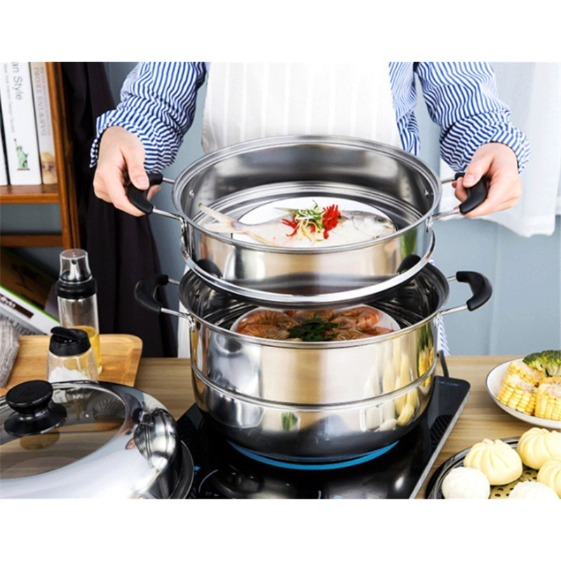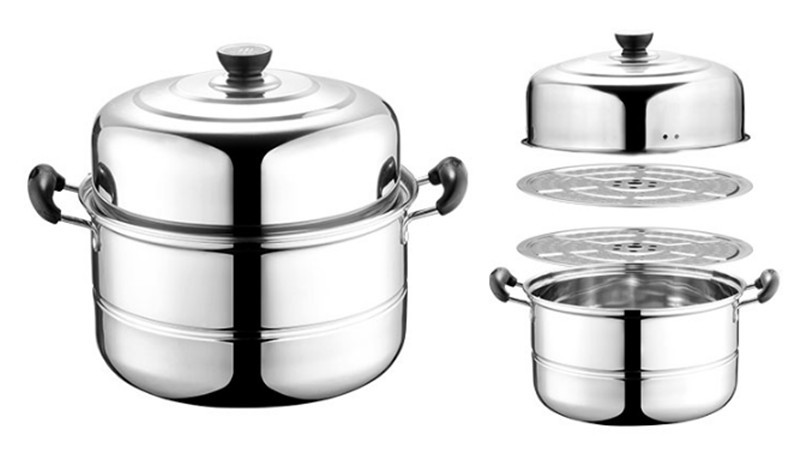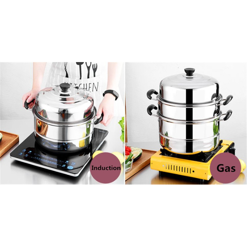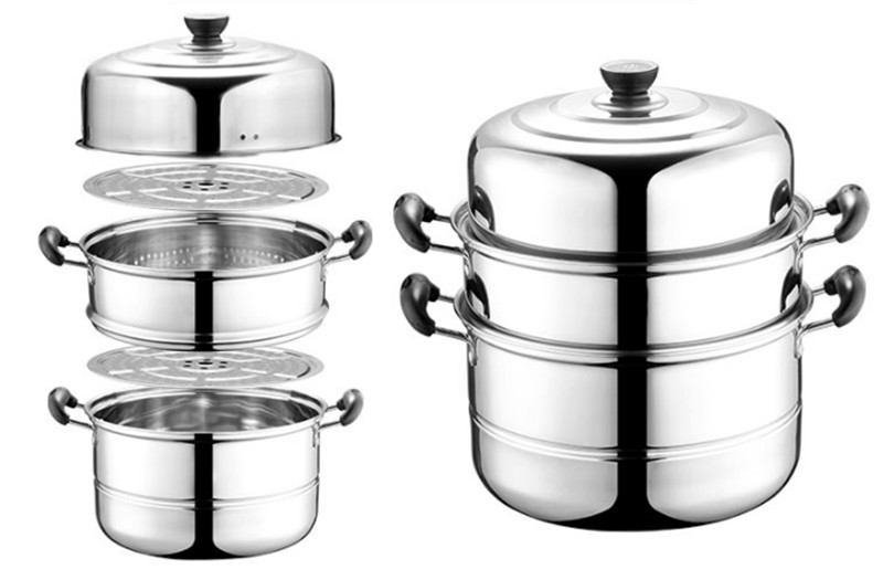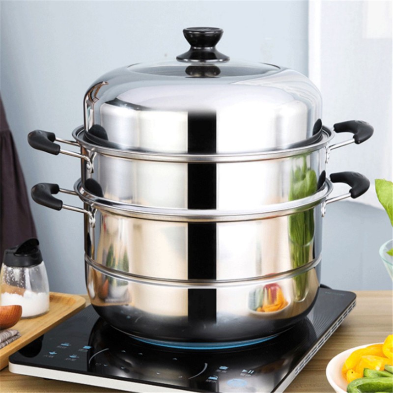 Paslanmaz Çelik Iki Üç Katmanlı Kalın Buharlı Tencere Çorba Buhar Pot Evrensel Pişirme Tencere Indüksiyon Ocak Gaz Sobası Buhar Potu
