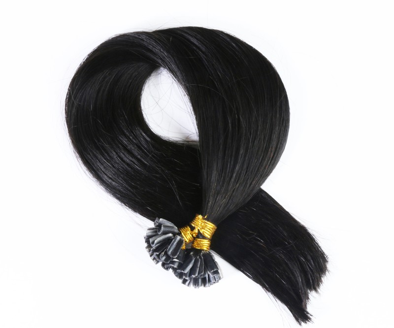 Düz Tırnak/U Ucu Saç Ekleme Doğal Insan Füzyon Saç Keratin Kapsül Uzantıları 0.8G 1G /Strand Siyah Renk 12-26 Inç