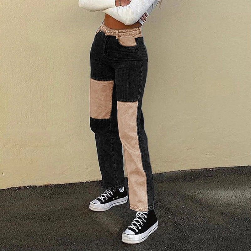 Streetwear Kadın Bodycon Kot Kadın Moda Patchwork Harajuku Estetik Pantolon Kot Kadınlar Için Yüksek Belli 90 Kot
