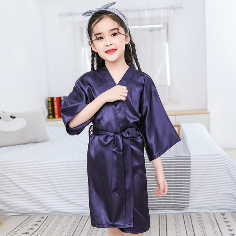 Yaz kızlar ipek elbise düz renk çocuk pijamaları çocuk yumuşak bornoz pijama