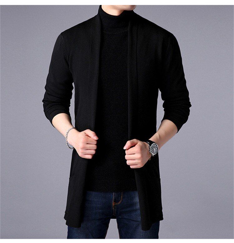 Kazak Mont Erkekler Için Yeni Moda En sonuncu Sonbahar Erkek Ince Uzun Düz Renk Örme Ceket Moda Erkek Rahat Kazak Hırka Mont