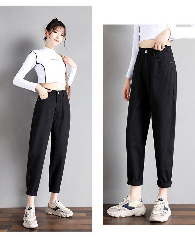 Syiwidii Kadınlar Için Yüksek Bel Kot Kot Pantolon Sokak Stiller Vintage Streetwear Elastik Bel Siyah Kot Kore Moda Anne