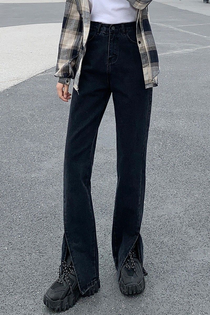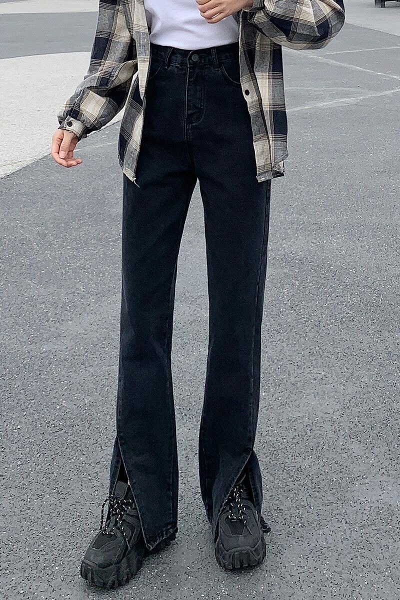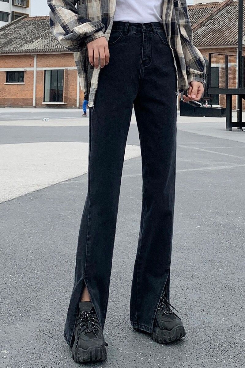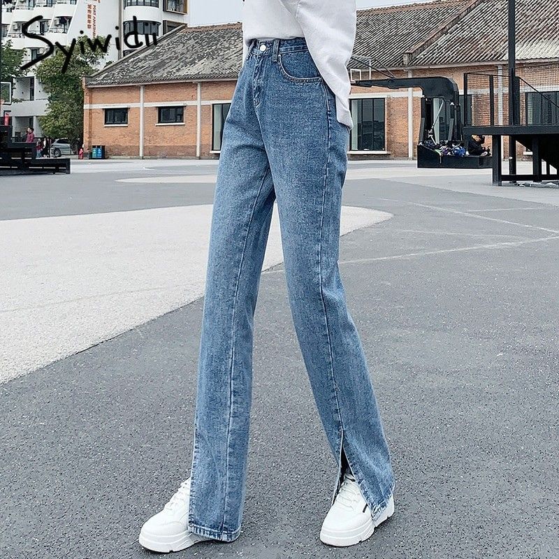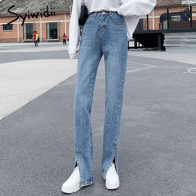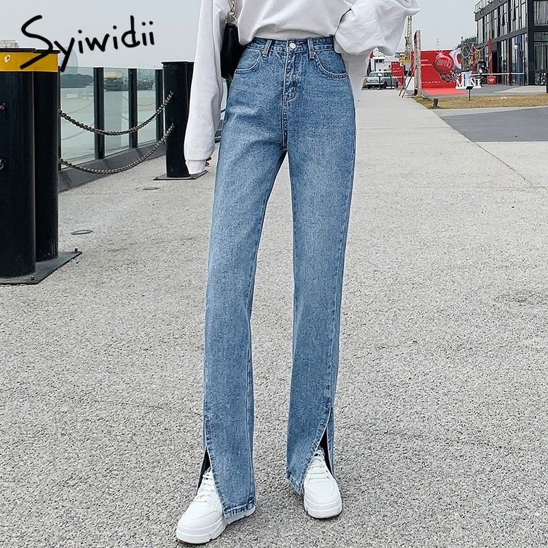 Syiwidii Kadın Kot Siyah parlama Pantolon Ön Yan Yarık Bacak en yeni Sonbahar Yüksek Belli Kot Çan Alt Kot tam Boy Denim Giysi