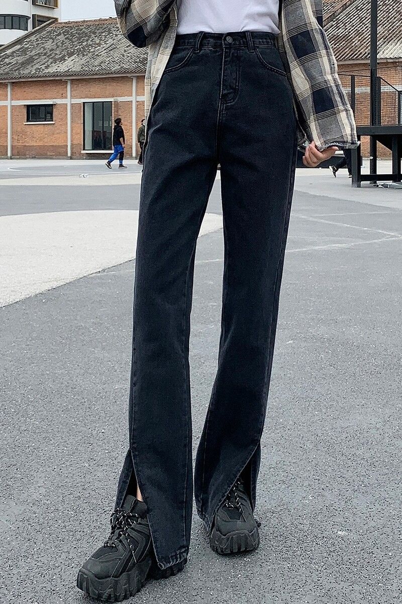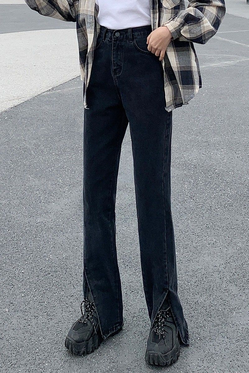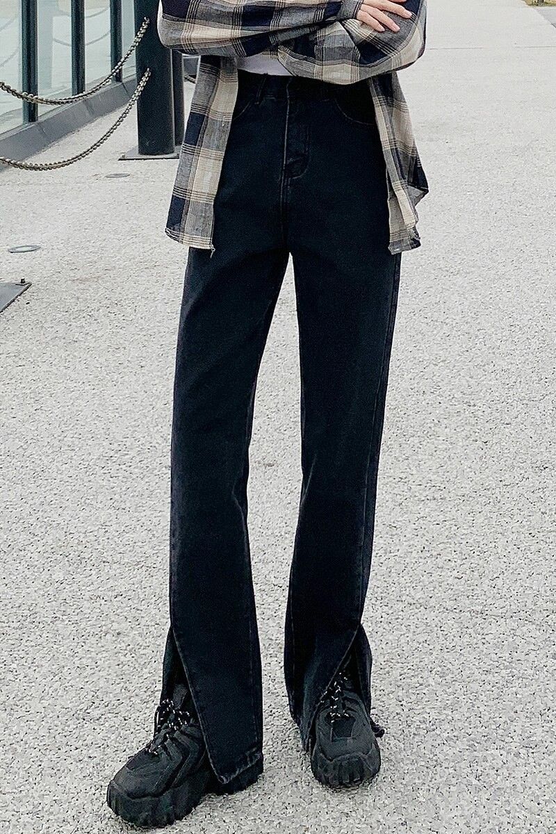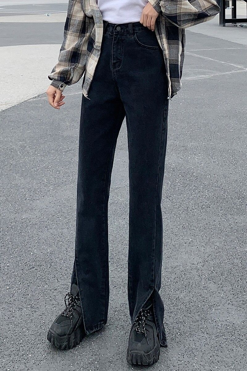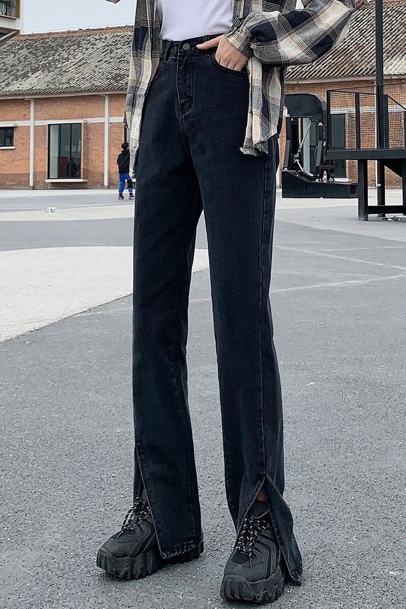 Syiwidii Kadın Kot Siyah parlama Pantolon Ön Yan Yarık Bacak en yeni Sonbahar Yüksek Belli Kot Çan Alt Kot tam Boy Denim Giysi