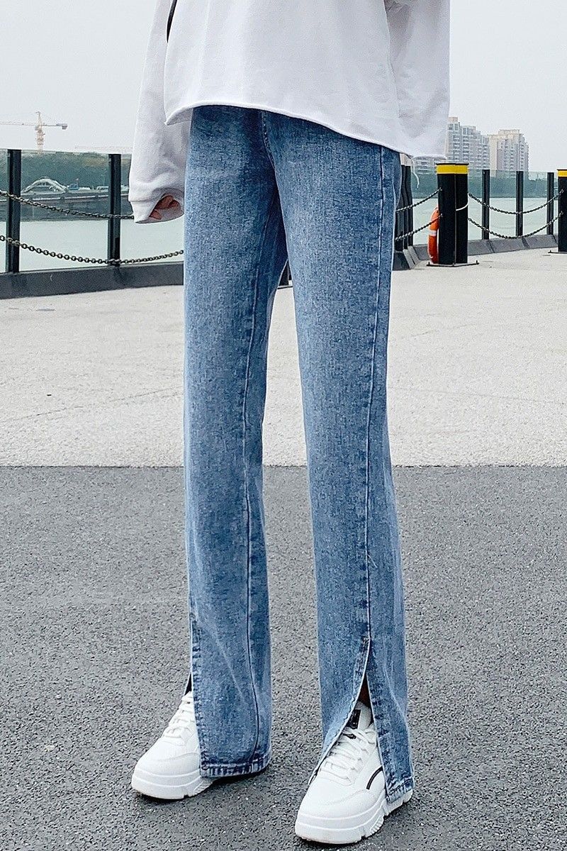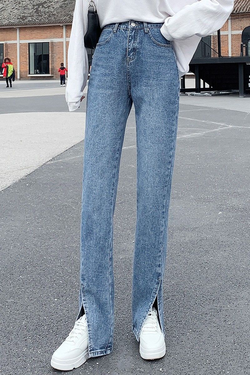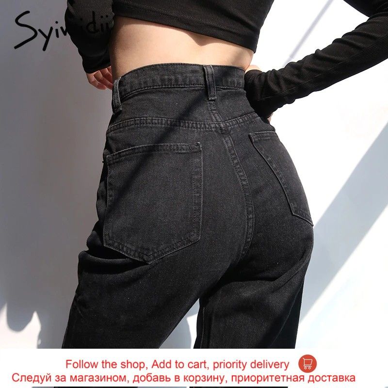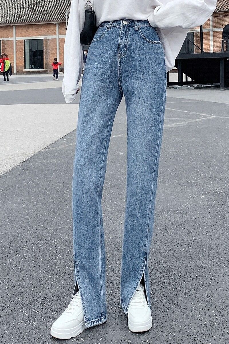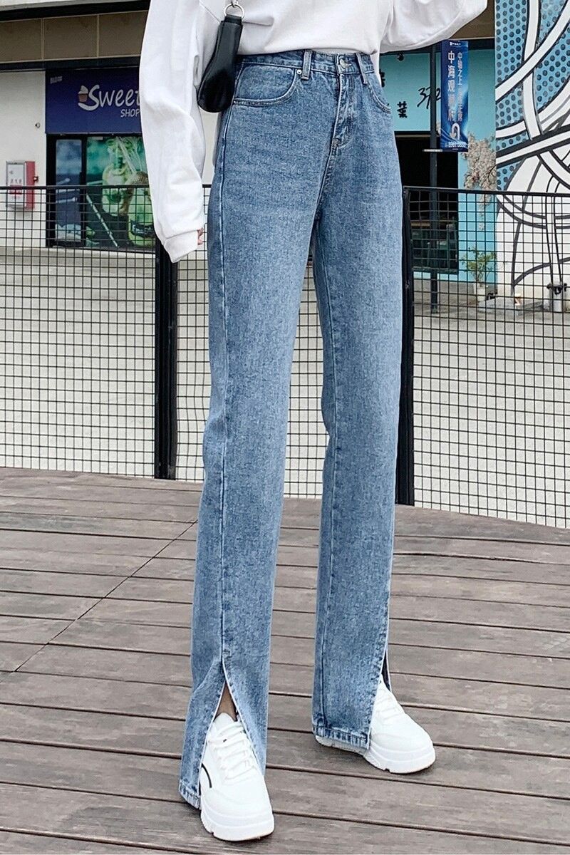 Syiwidii Kadın Kot Siyah parlama Pantolon Ön Yan Yarık Bacak en yeni Sonbahar Yüksek Belli Kot Çan Alt Kot tam Boy Denim Giysi