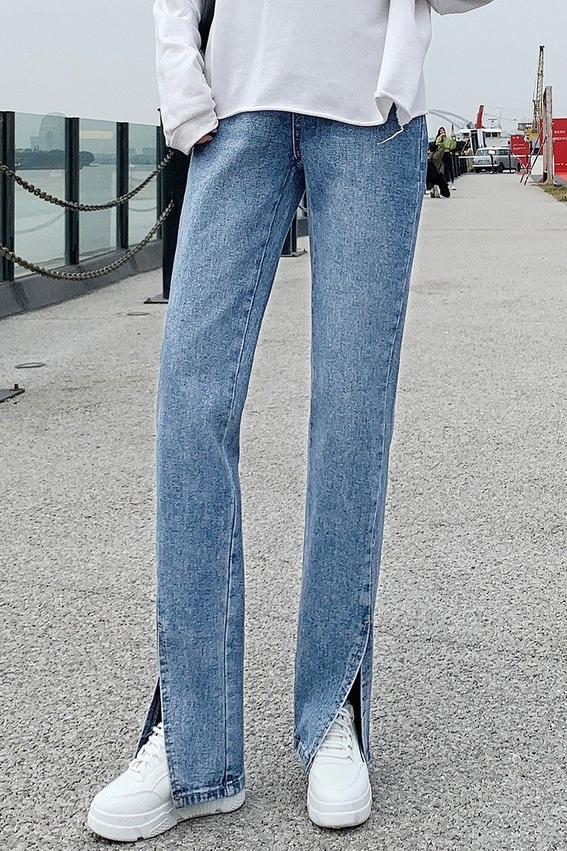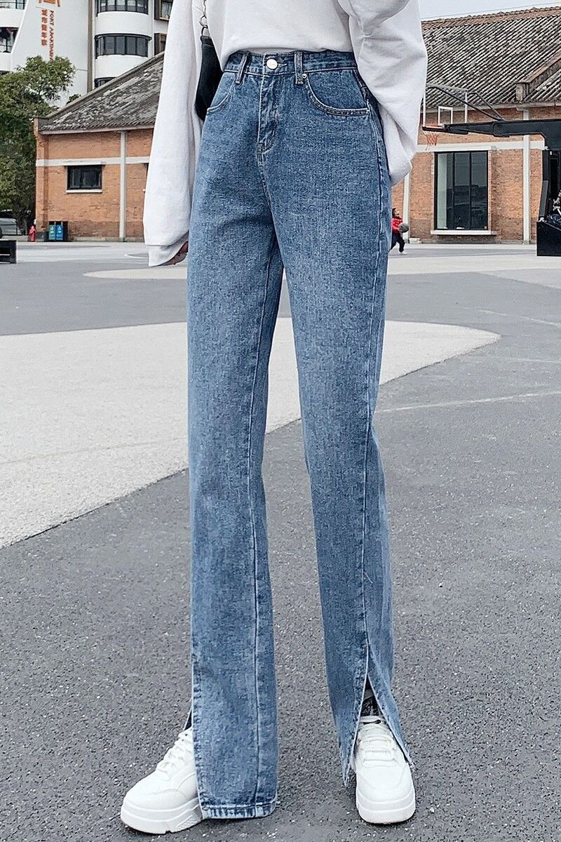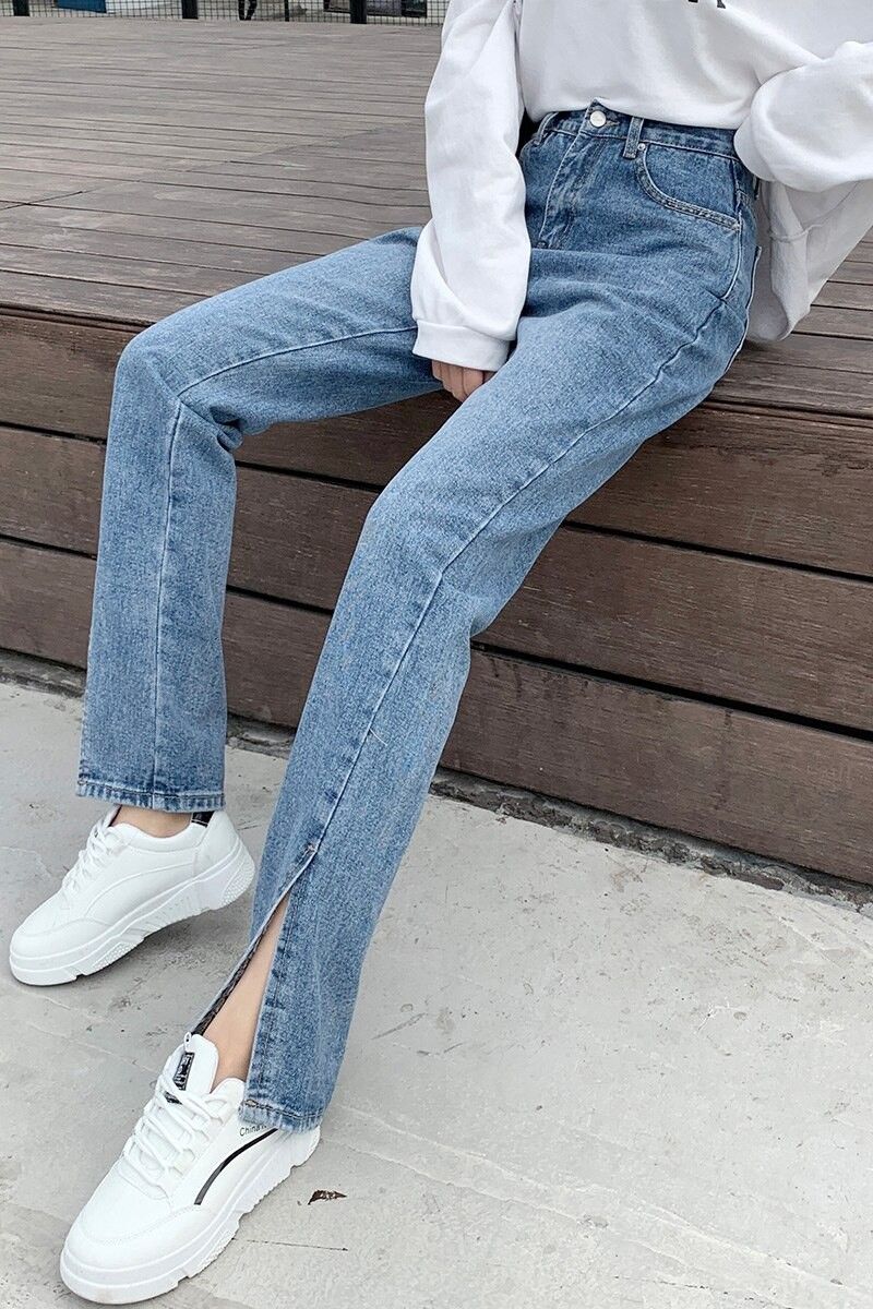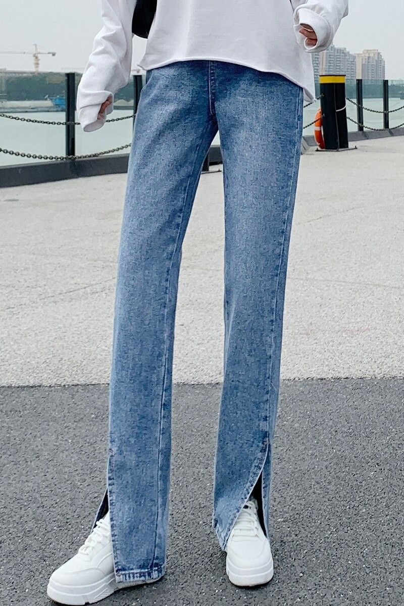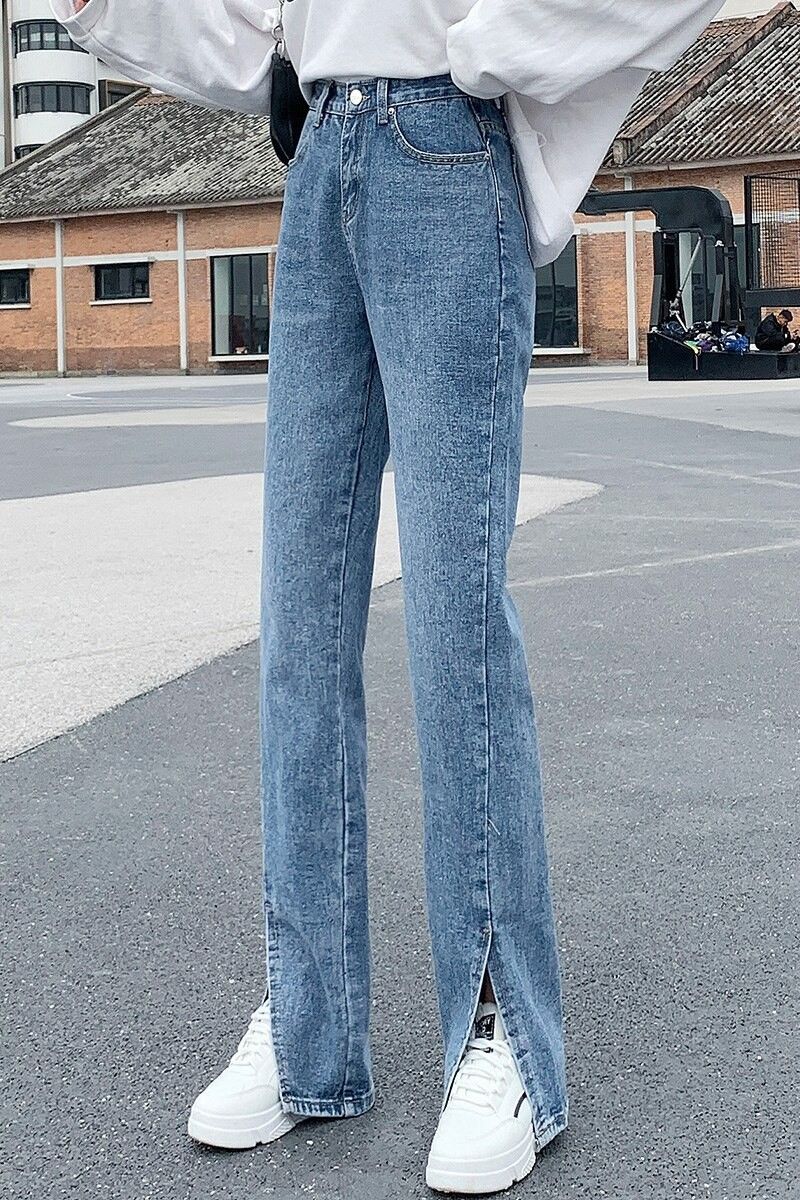 Syiwidii Kadın Kot Siyah parlama Pantolon Ön Yan Yarık Bacak en yeni Sonbahar Yüksek Belli Kot Çan Alt Kot tam Boy Denim Giysi