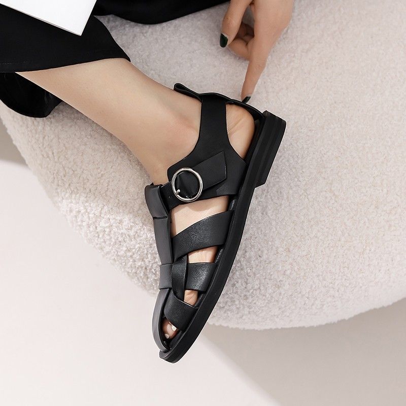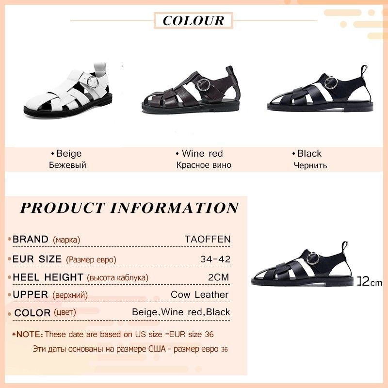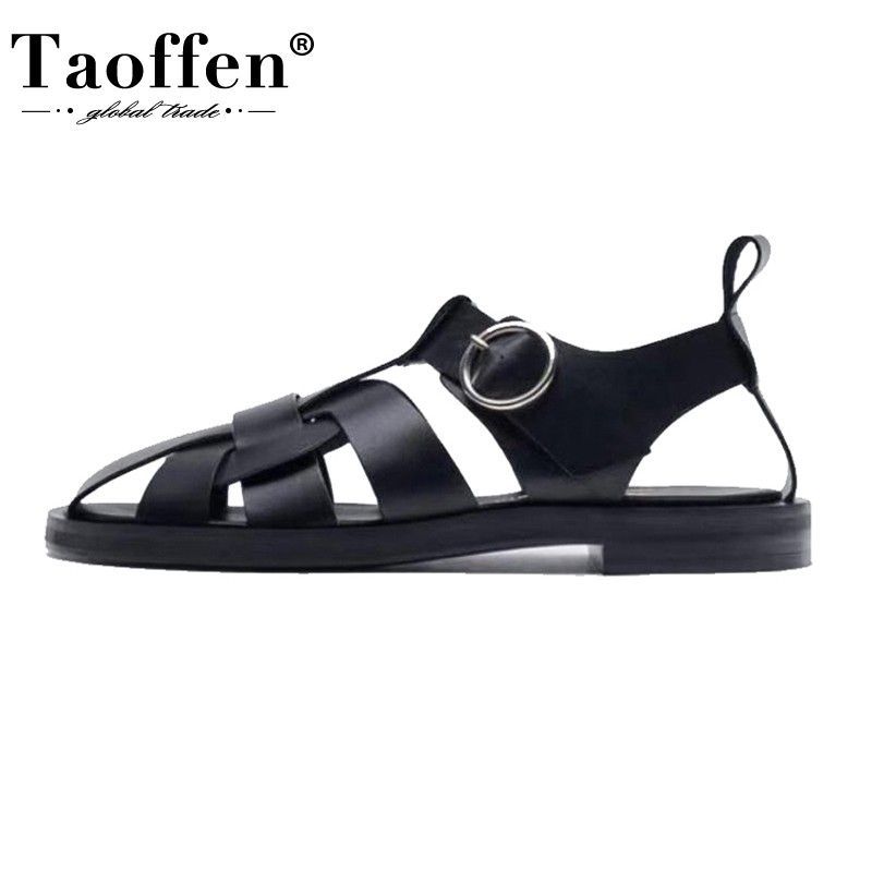 Taoffen en yeni Yeni Kadın Gerçek ile Ayakkabı Yaz Sandalet Toka Askı Oymak Out Plaj Sandaletleri Serin Kadın Ayakkabıları Boyutu 34-42