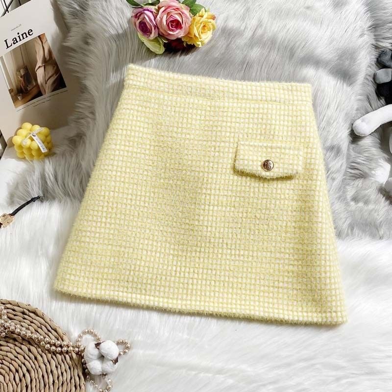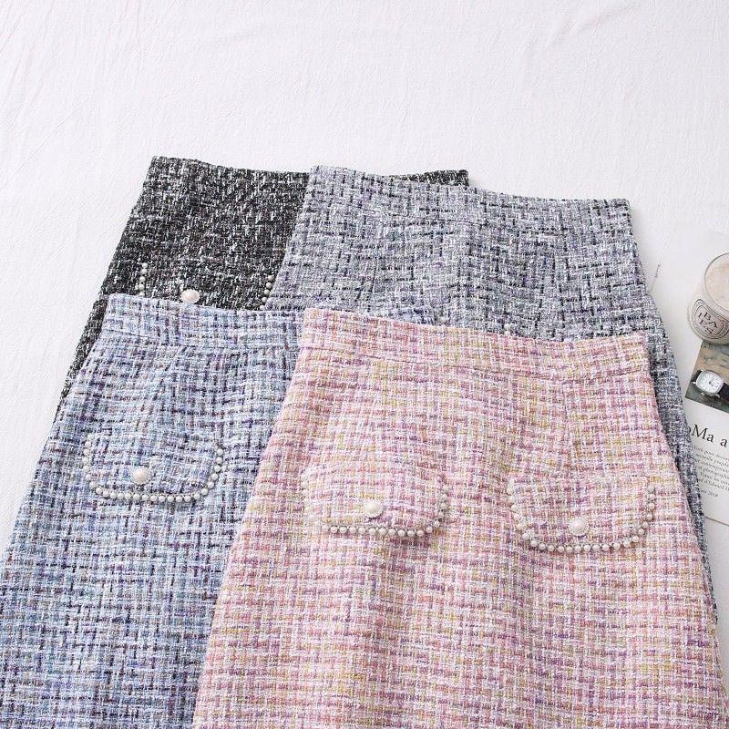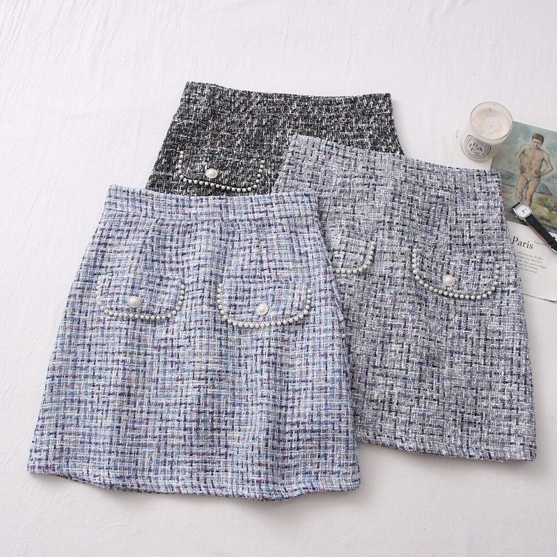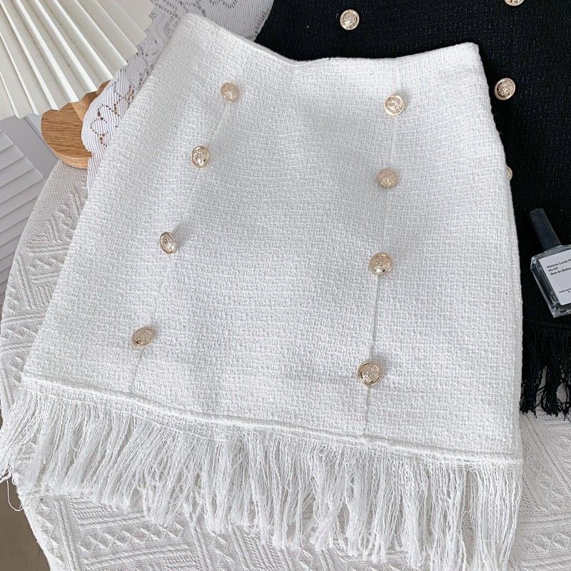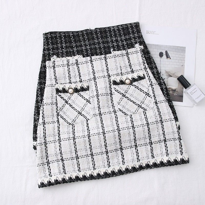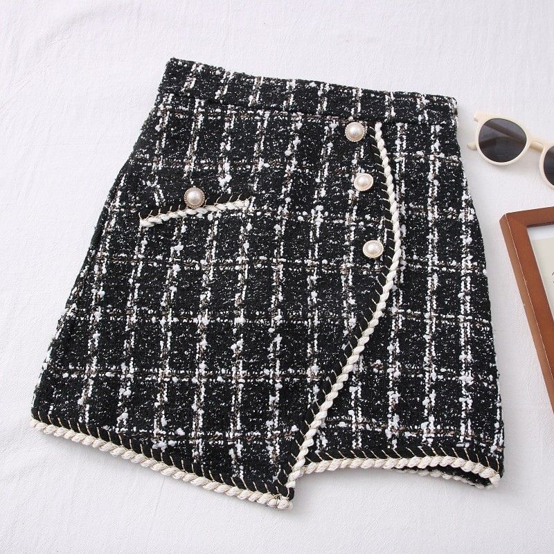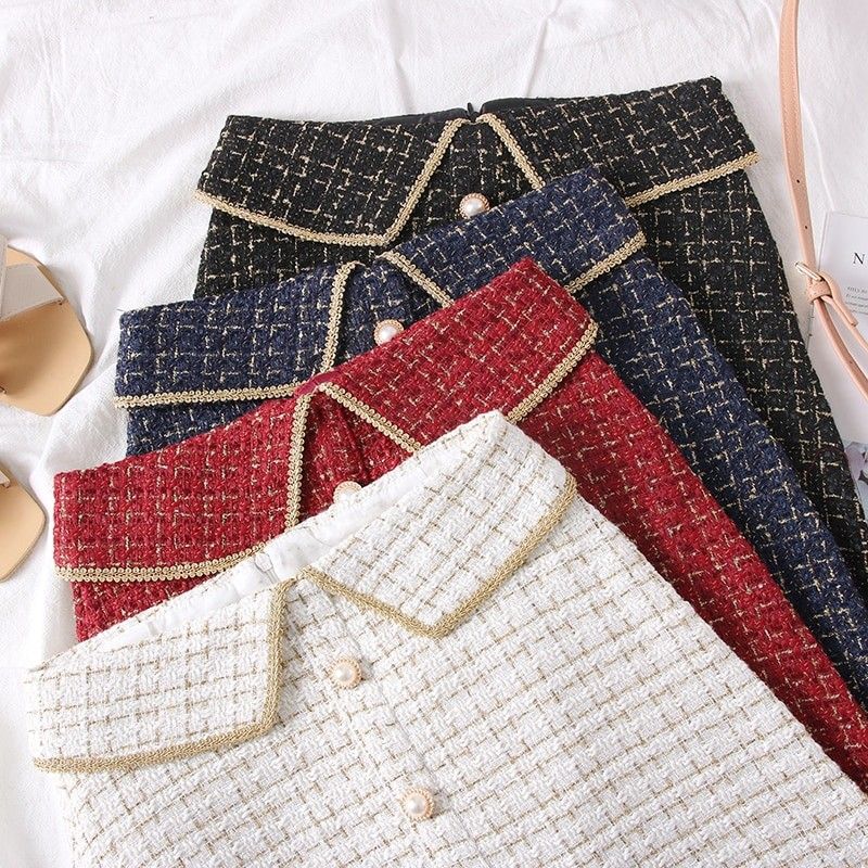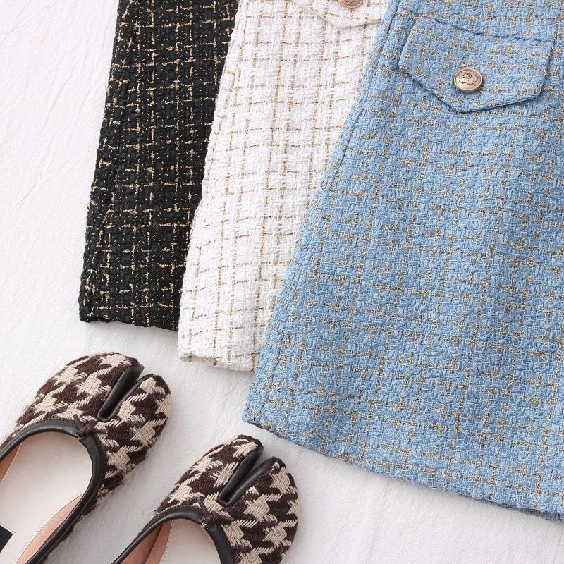 Tüvit Etek Kadınlar Için Katı Yüksek Bel Zayıflama Etekler Sonbahar Bahar en yeni Düğmeler Kruvaze Tüvit Yün Mini Etek