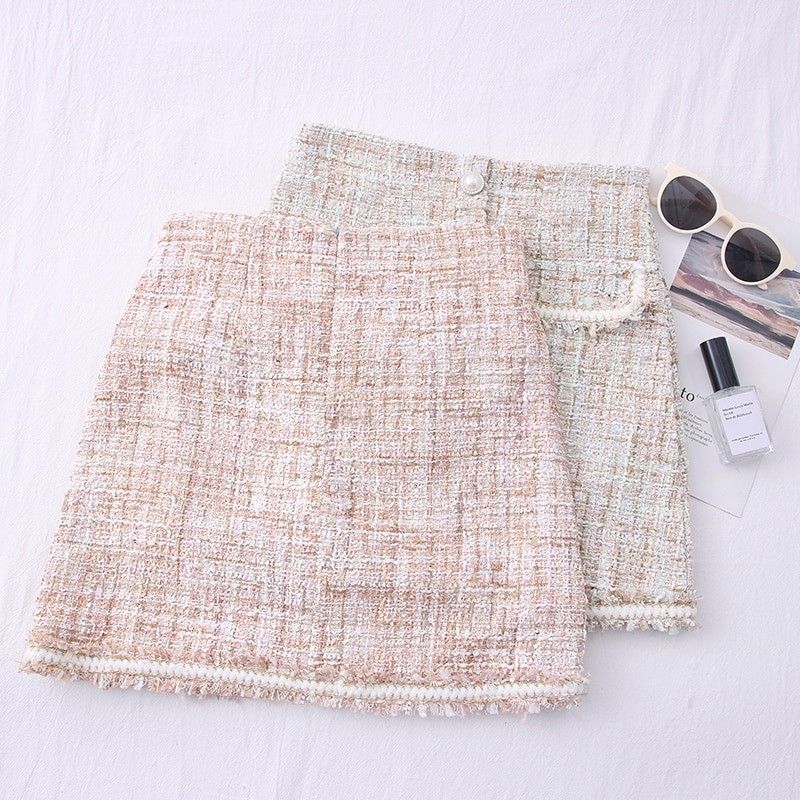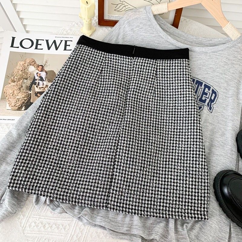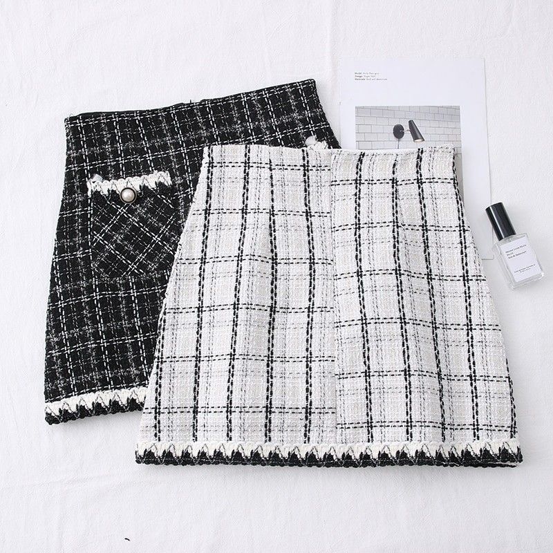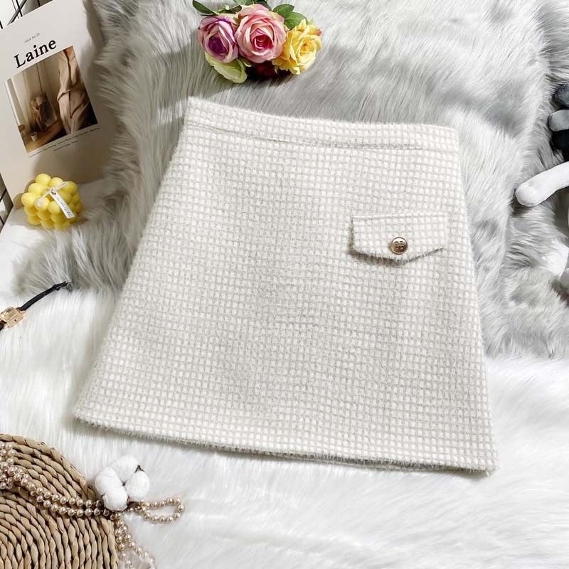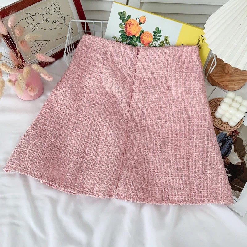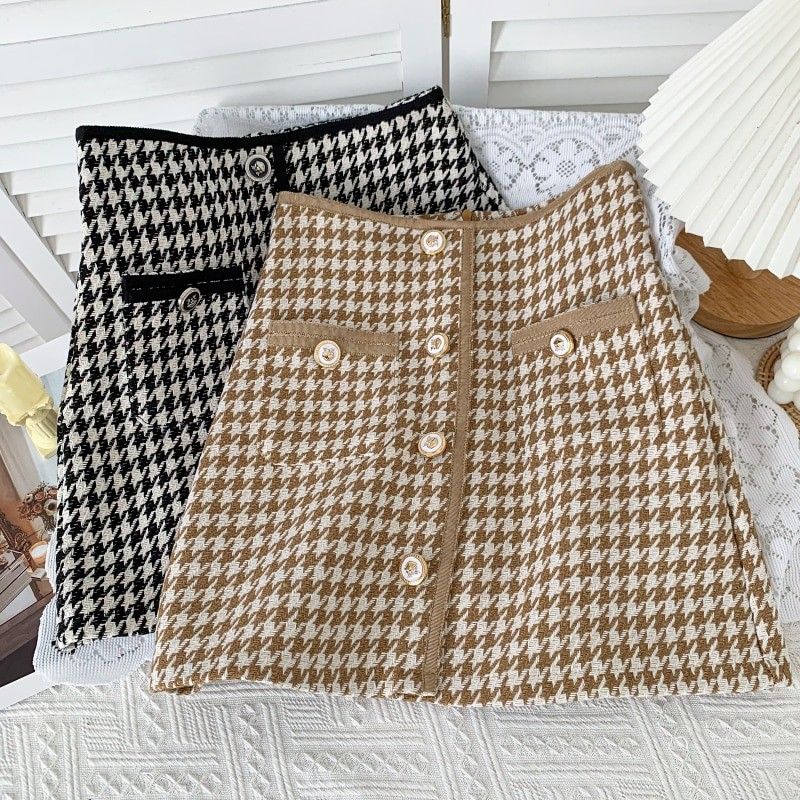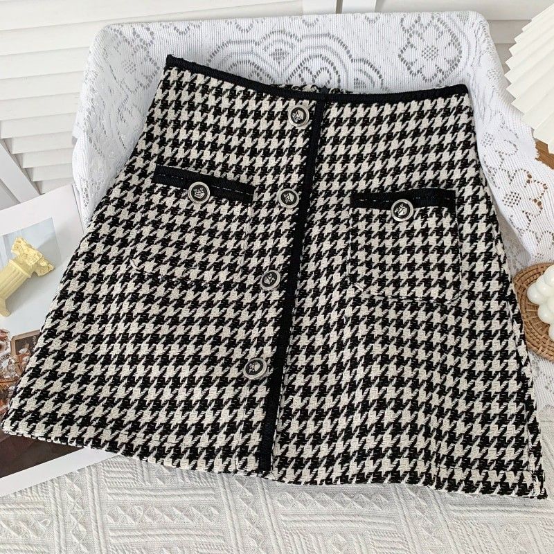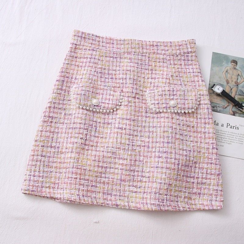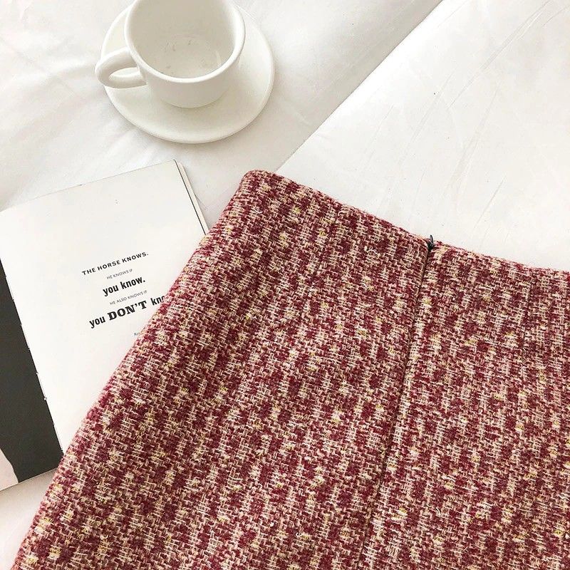 Tüvit Etek Kadınlar Için Katı Yüksek Bel Zayıflama Etekler Sonbahar Bahar en yeni Düğmeler Kruvaze Tüvit Yün Mini Etek