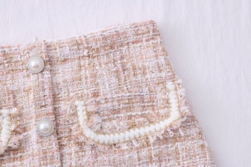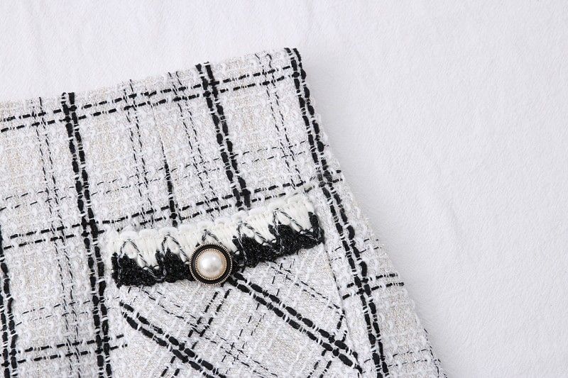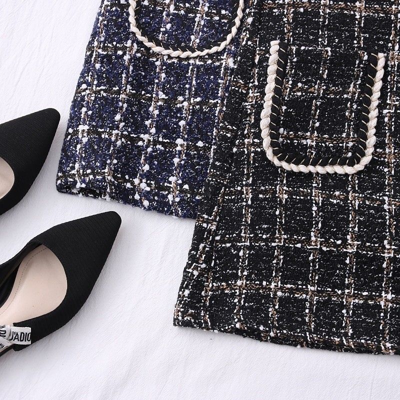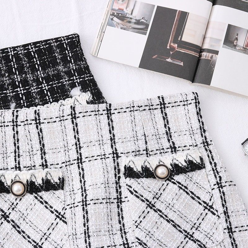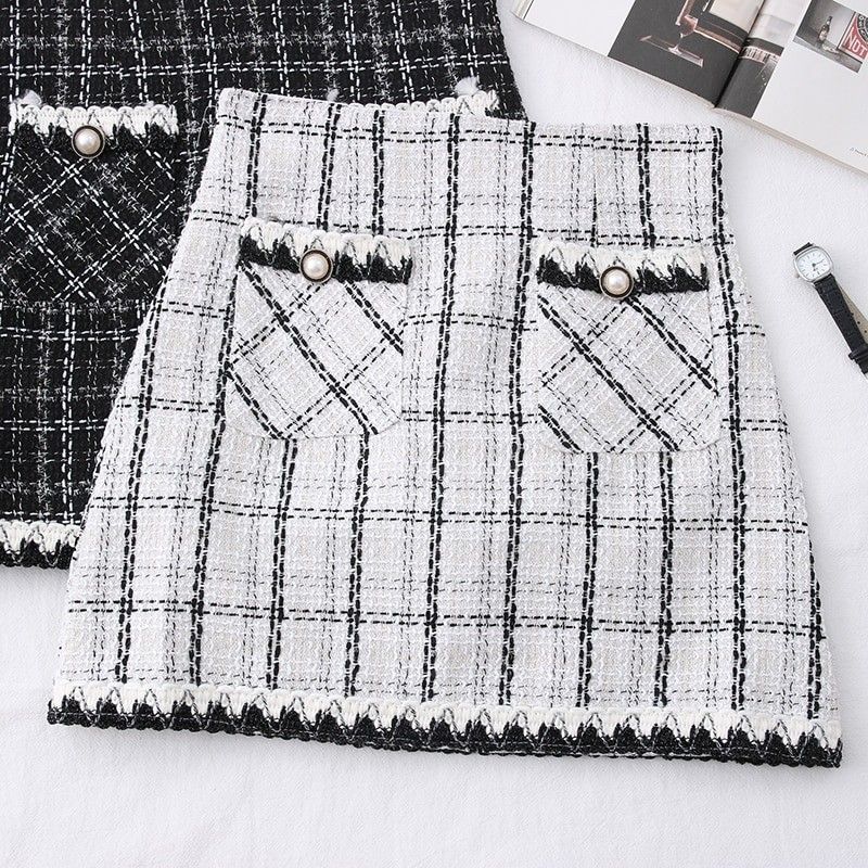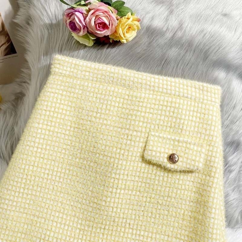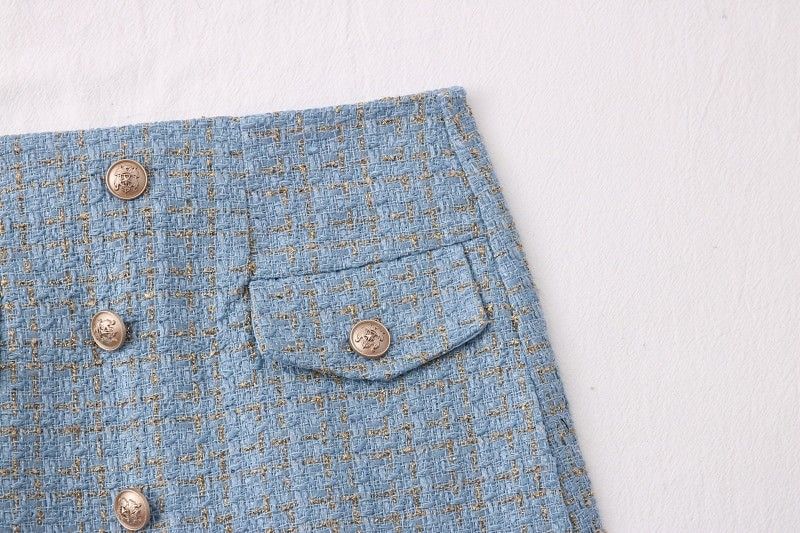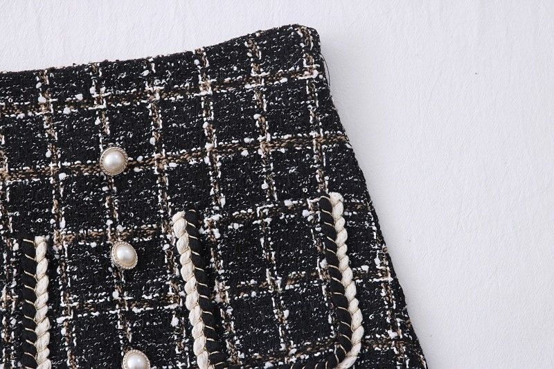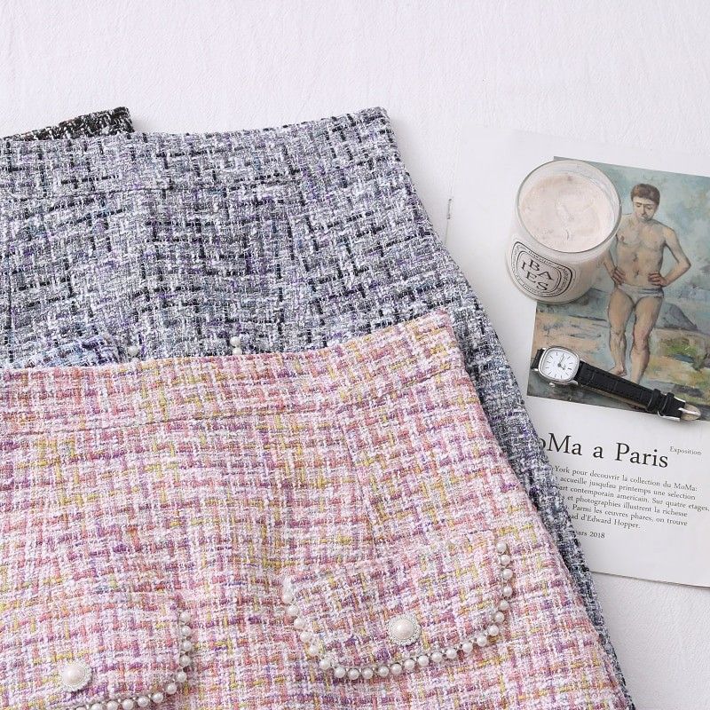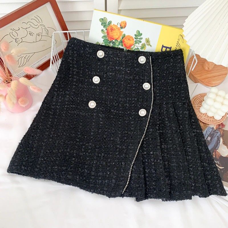Tüvit Etek Kadınlar Için Katı Yüksek Bel Zayıflama Etekler Sonbahar Bahar en yeni Düğmeler Kruvaze Tüvit Yün Mini Etek