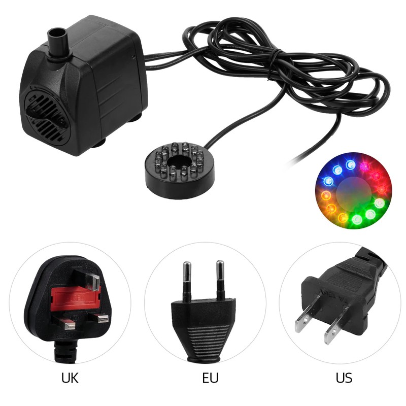 Bu su pompası akvaryum çeşme ve balık tankı, vb için dalgıç için uygundur. LED ışık, düşük gürültü ve yüksek verimlilik ile. Bu pompa su akışı yaratır ve doğal okyanus veya nehir ortamını simüle etmek için akvaryumunuzu havalandırır.