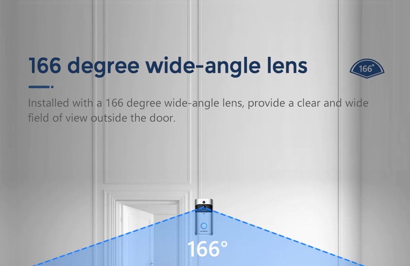 166 derecelik geniş açılı lens ile monte edilmiş, kapının dışında net ve geniş bir görüş alanı sağlar