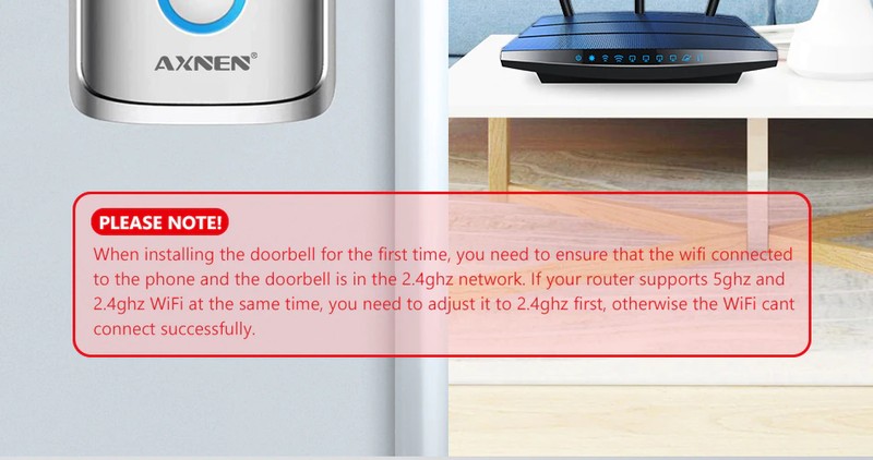Kapı zilini ilk kez kurarken, telefona bağlı olan wifi'nin ve kapı zili 2.4ghz ağında olmasını sağlamanız gerekir. Yönlendiriciniz aynı anda 5ghz ve 2.4ghz wifi'yi destekliyorsa, önce 2.4 ghz'e ayarlamanız gerekir, aksi takdirde Wifi başarıyla bağlanamaz