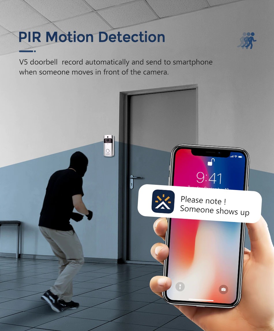 6.Support PIR hareket algılama, birisi kapıda gezindiğinde, hemen cep telefonuna push bildirimleri uyarır.
