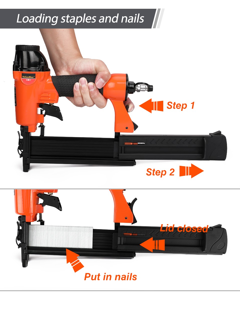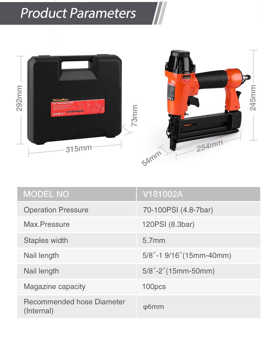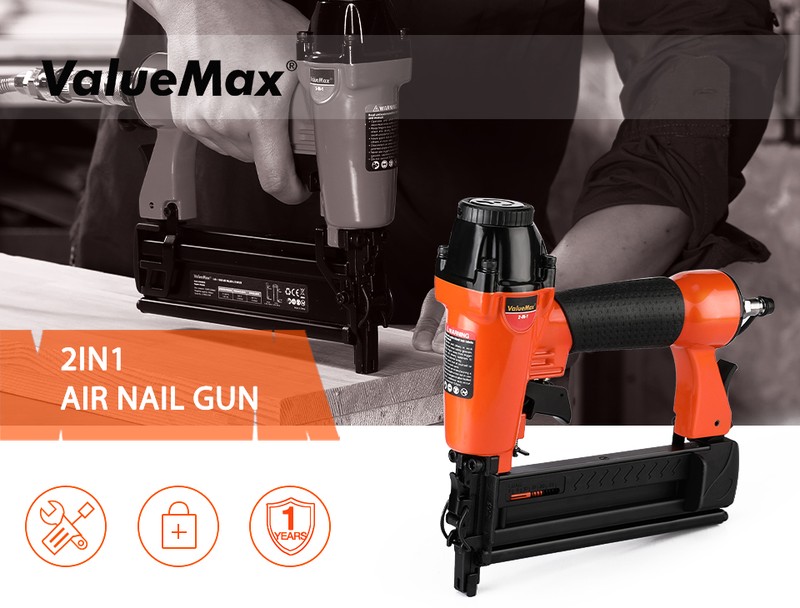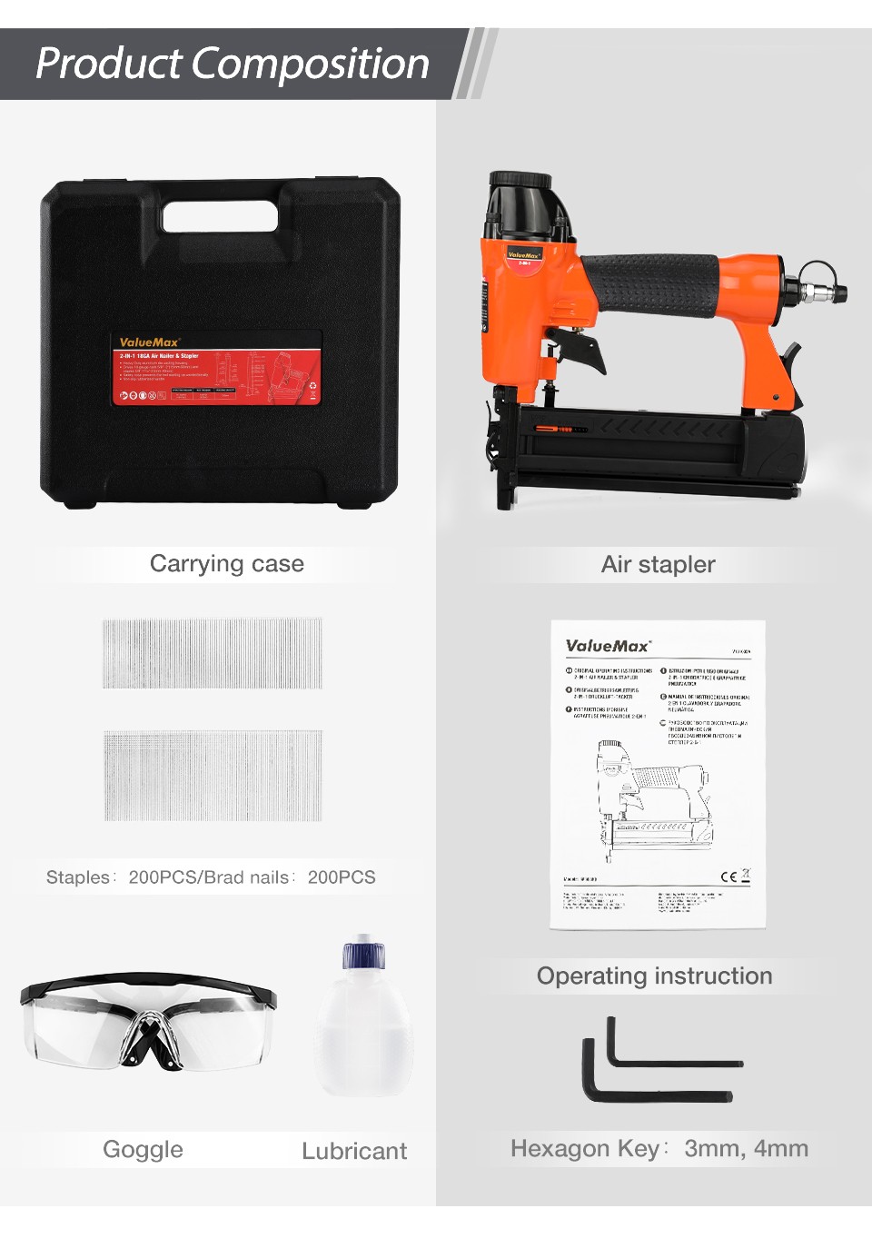 Valuemax 2 In1 Havalı Çivi Tabancası Mobilya Brad Nailer Pnömatik Tabanca Ahşap Çerçeve Zımba Pnömatik Alet Elektrikli El Aletleri Ile 400Pc Zımba
