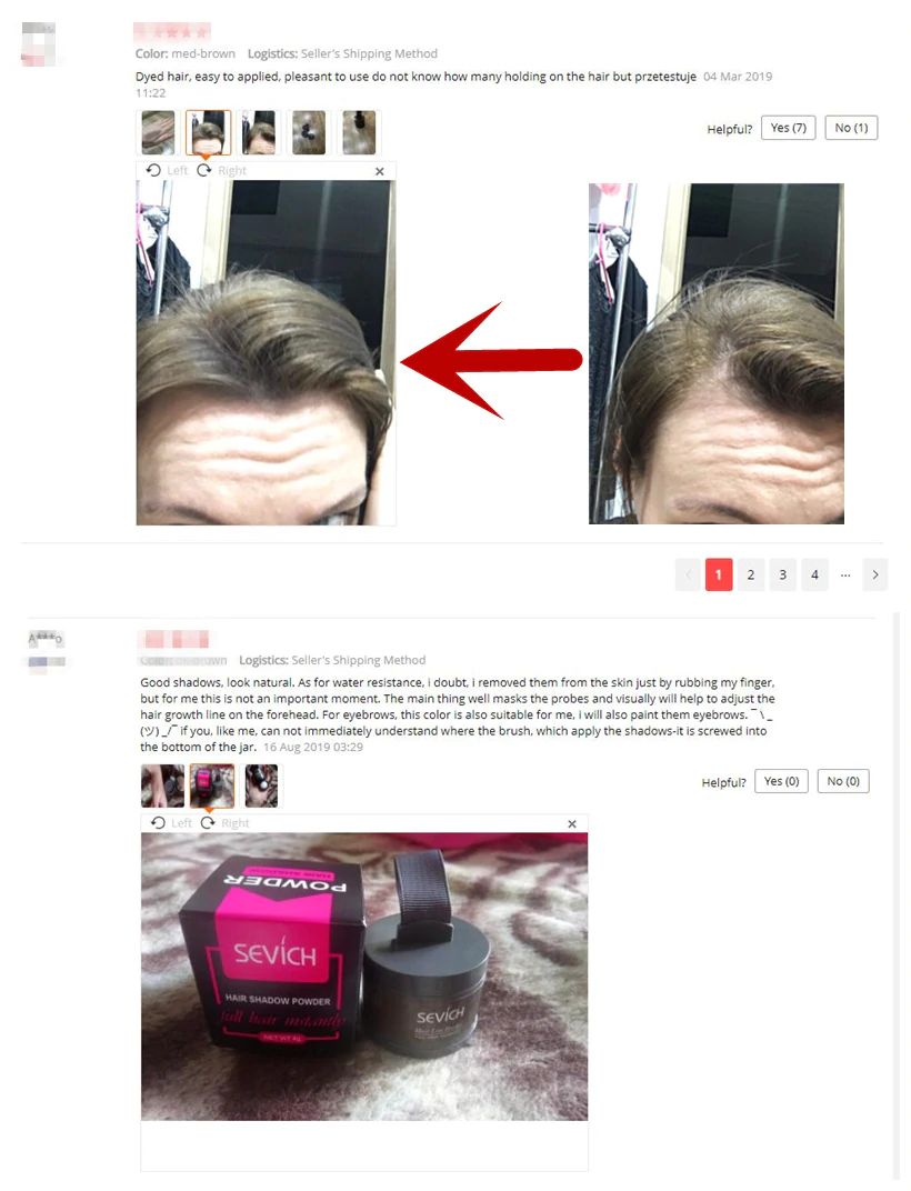 Saç çizgimizi kullanmadan önce ve sonra % gölge tozu karşılaştırma