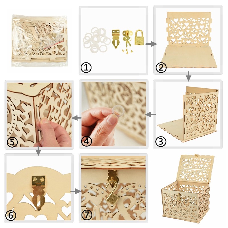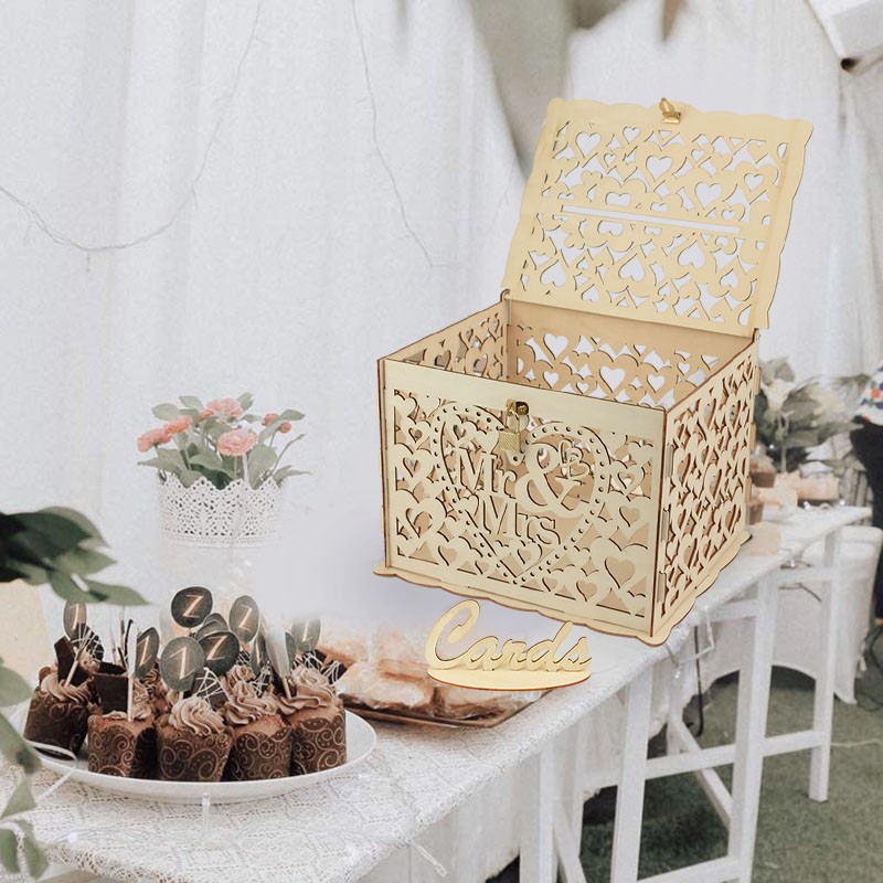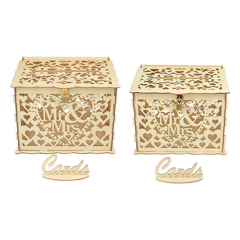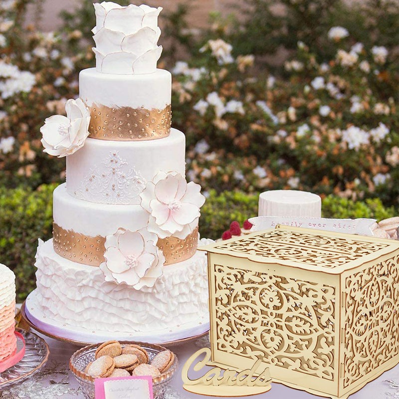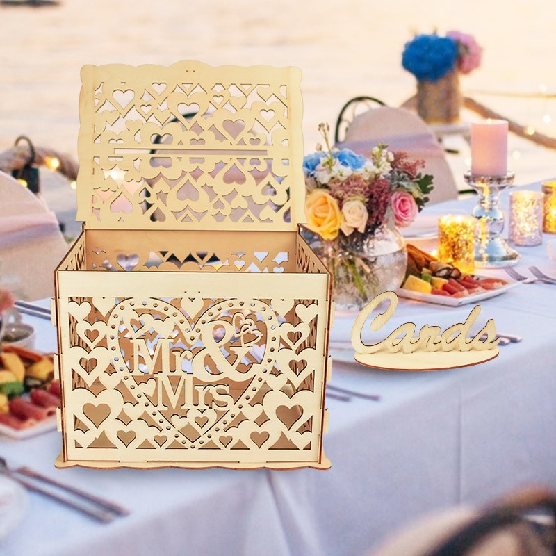 Evlilik Davetiyesi Kutusu Zarf Hediye Kartı Ahşap Kutular Hollow Çiçek Desen Davetiye Kartı Diy Kutusu Düğün Parti Dekorasyon Malzemeleri