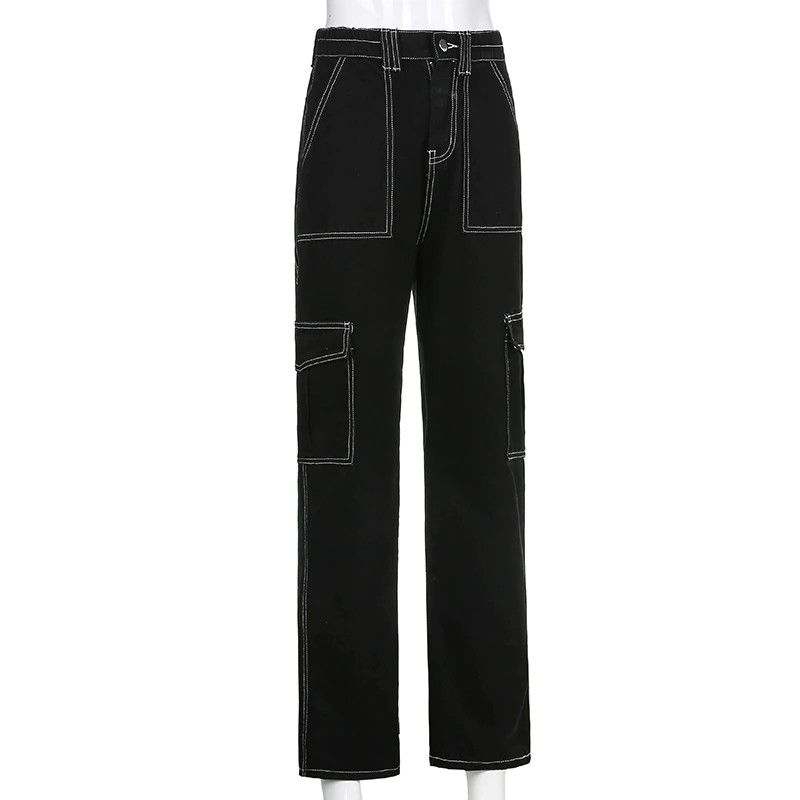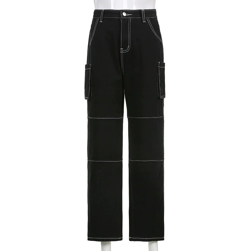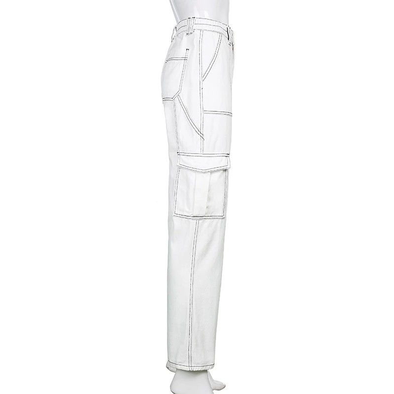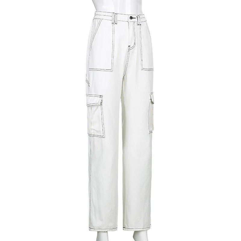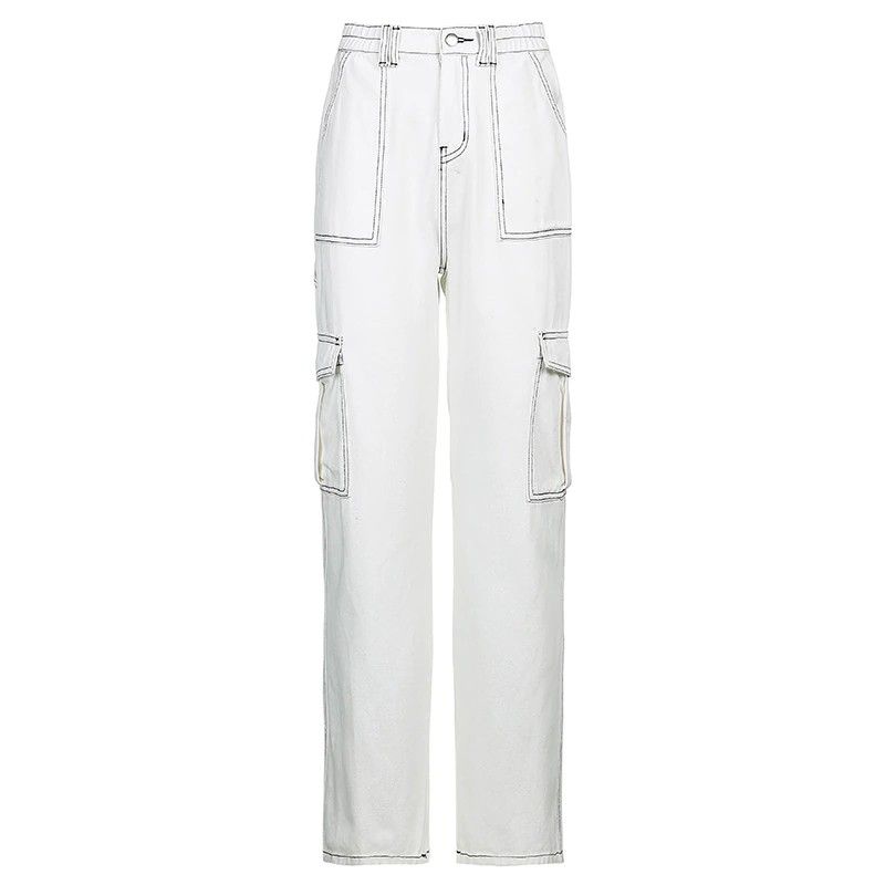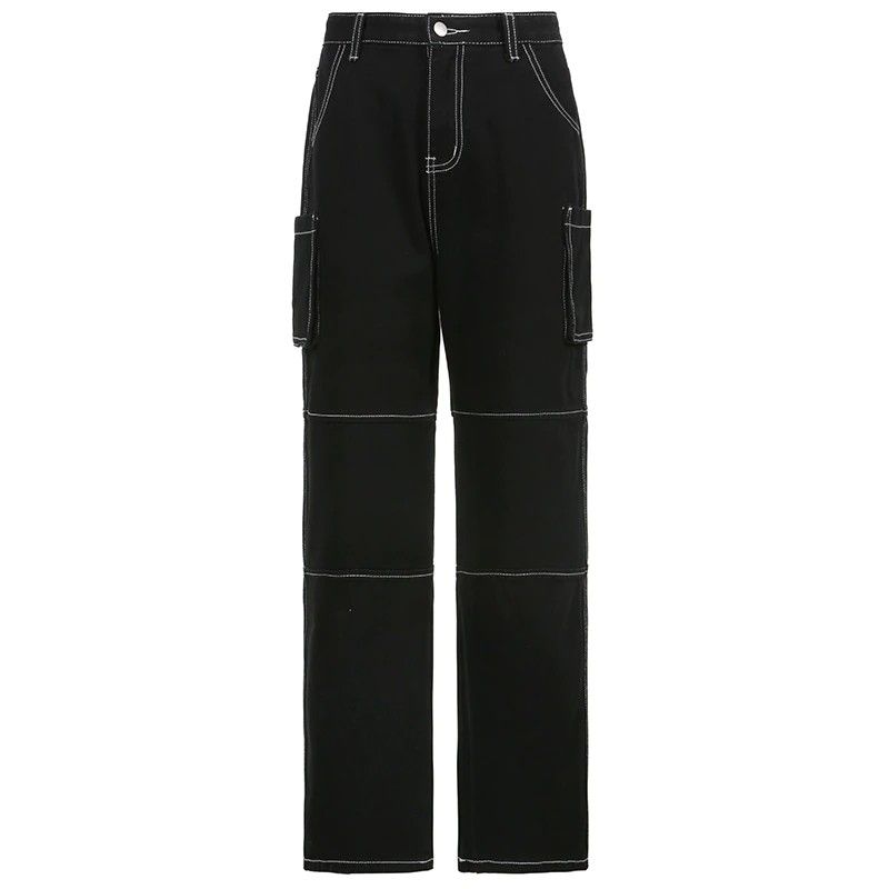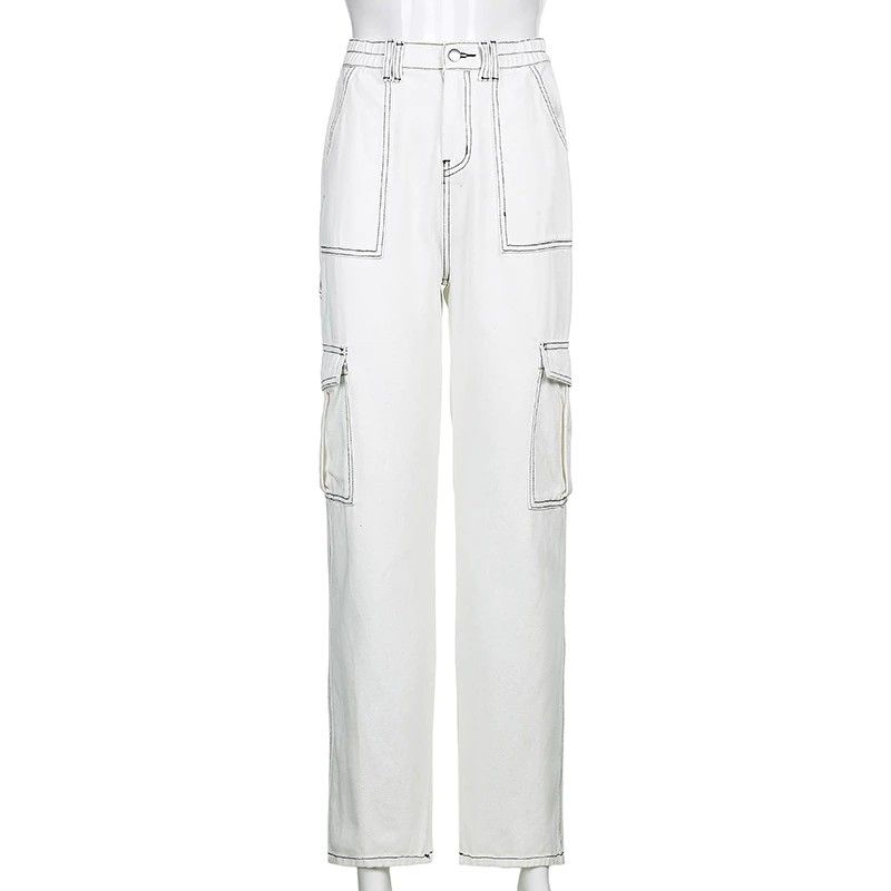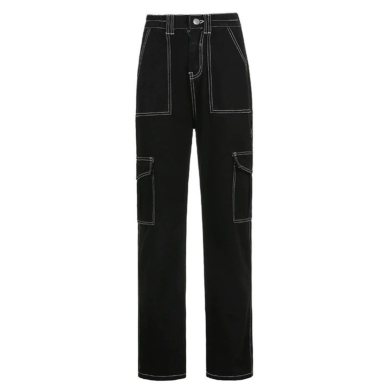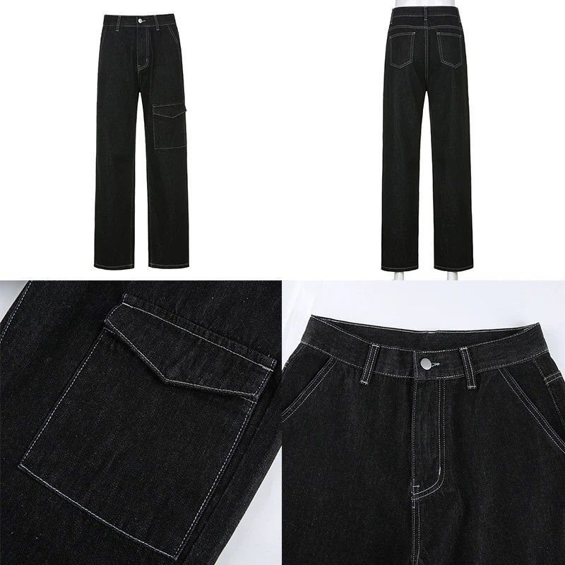 Weekeep Cepler yama işi Baggy Kot Moda Streetwear % 100% Pamuk Kadın Kot Pantolon Gevşek Kargo Pantolon Kore Kotu Harajuku