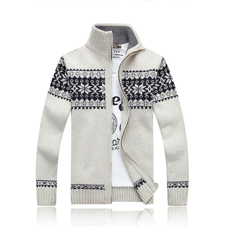Kış Kalın Erkek Örme Kazak Ceket Beyaz Uzun Kollu Hırka kutup Tam Zip Erkek Nedensel Artı Boyutu Giyim Sonbahar Için