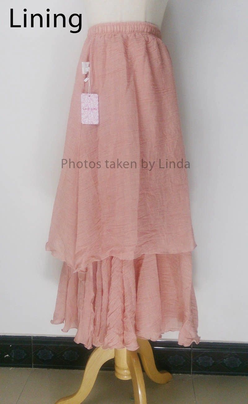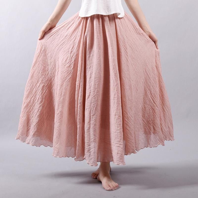 Kadın Zarif Yüksek Bel Keten Maxi Etek en yeni Yaz Bayanlar Rahat Elastik Bel 2 Kat Etek Saia Feminina 20 Renk Sk53
