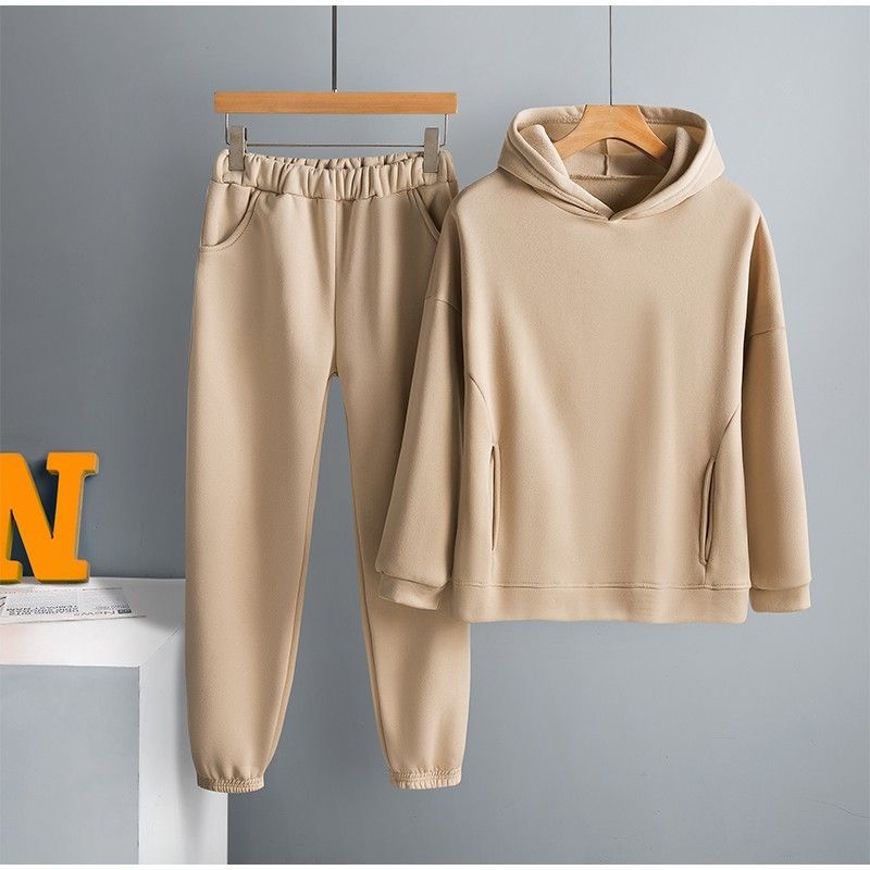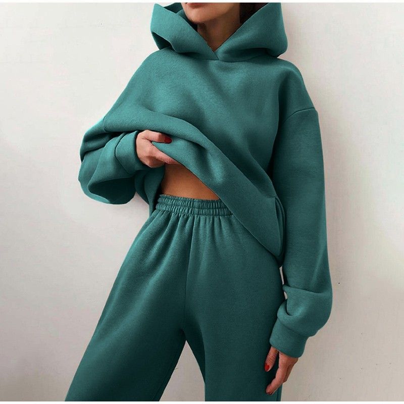 Kadın Hoodies Iki Parçalı Set Uzun Kollu Katı Rahat Cep Kazak Takım Elbise Bahar en yeni Elastik Spor Pantolon Kadın Eşofman