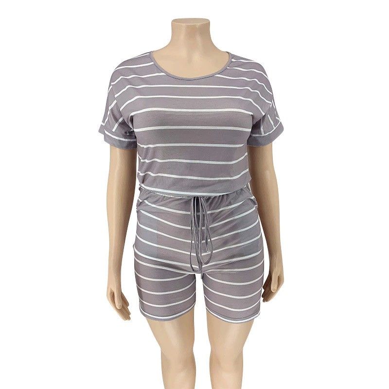 Kadın Tek Parça Tulum Yaz Giysileri Orta Bel Elastik Şort Tulumlar Artı Boyutu Çizgili Romper Toptan Dropshipping