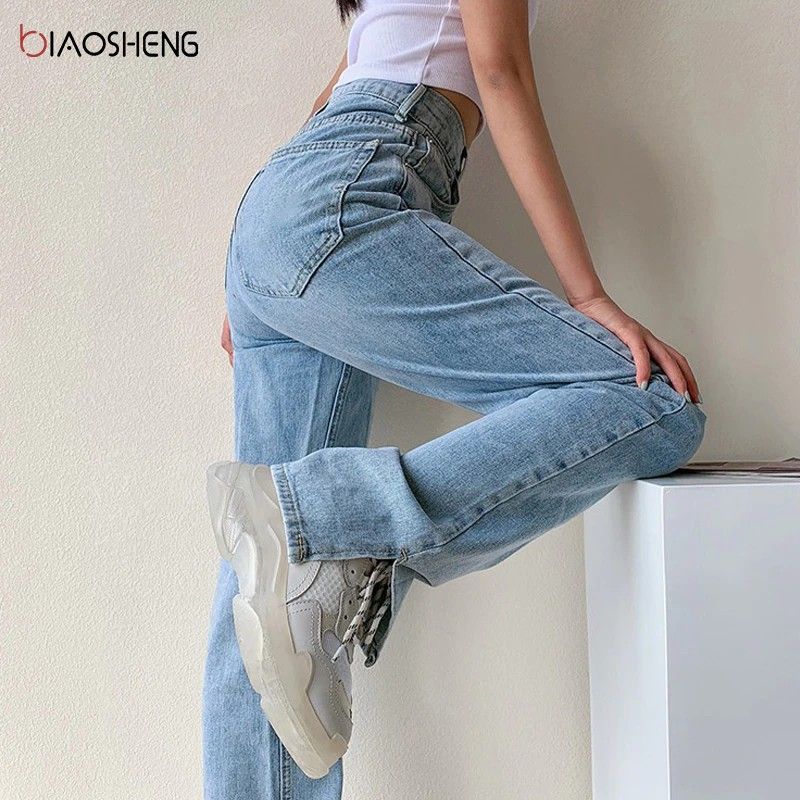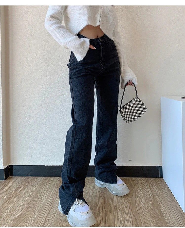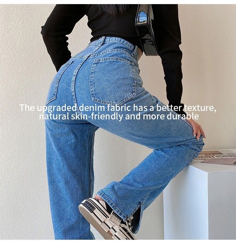 Kadın Pantolonları Düz Bacak Kot Kadınlar Yüksek Bel İnce Gevşek Sonbahar Kış Pantolonları Rahat Bölünmüş Yıkanmış Anne Moda Pantolon
