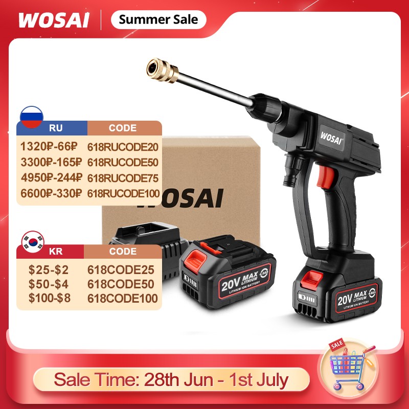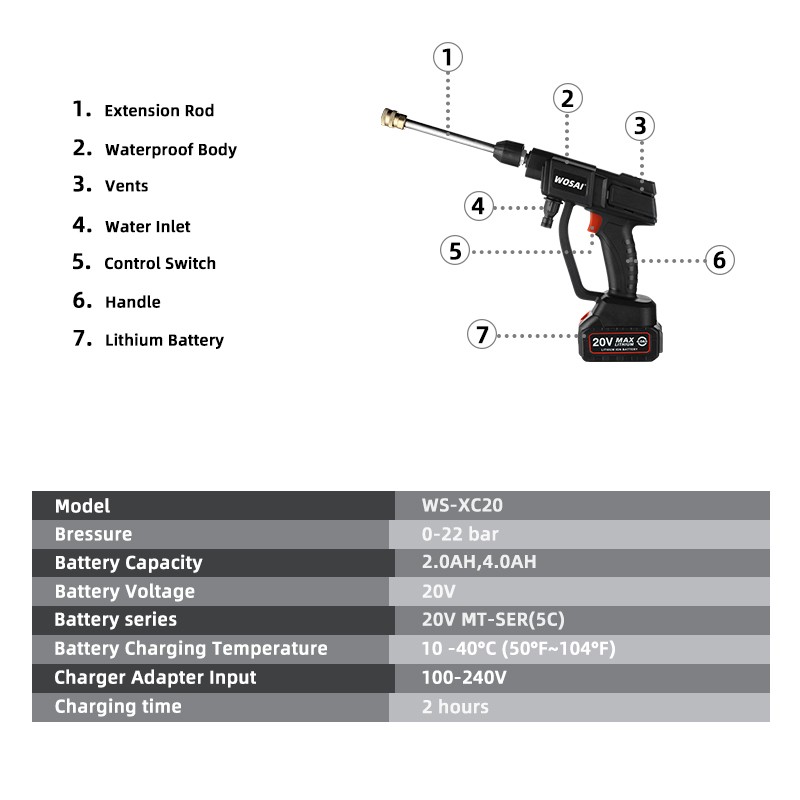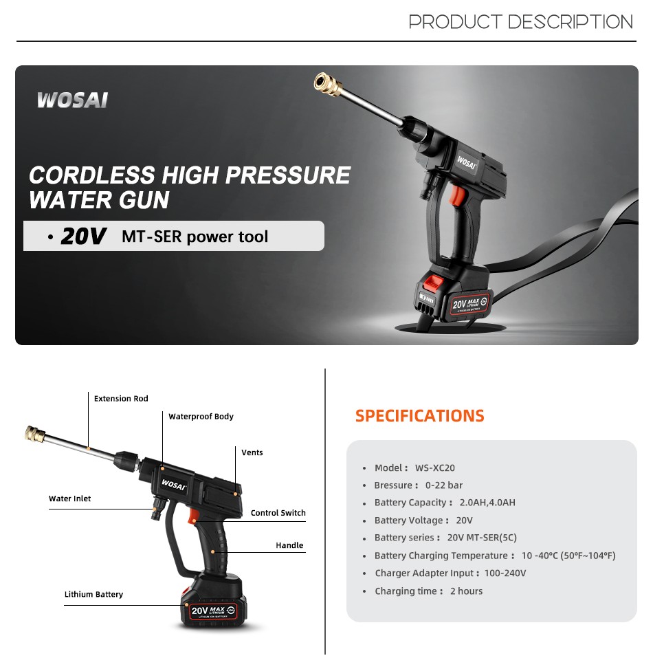 Wosai Kablosuz Yüksek Pressureelectric Araba Yıkama Tabancası 20V Çok Fonksiyonlu Meme Taşınabilir Temizleyici Köpük Araba Yıkama Bahçe Sprey
