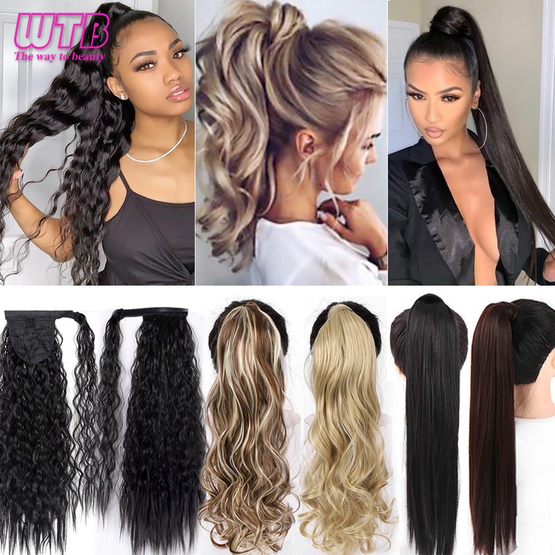 Wtb 22 &Quot;Uzun Dalgalı Etrafında Sarın Klip At Kuyruğu Saç Uzatma Isıya Dayanıklı Sentetik Doğal Dalga At Kuyruğu Sahte Saç