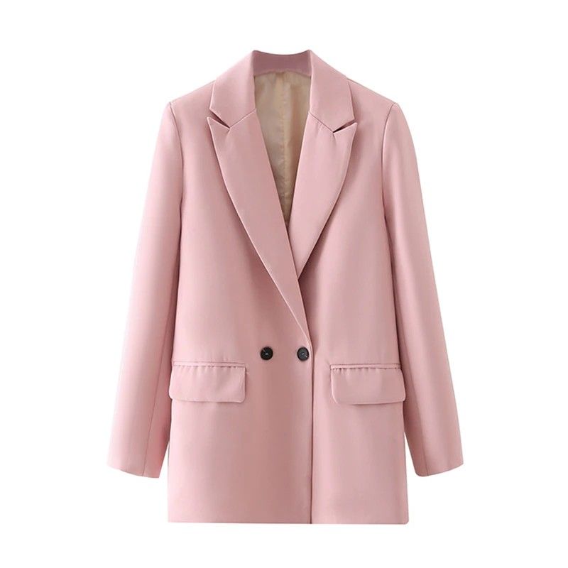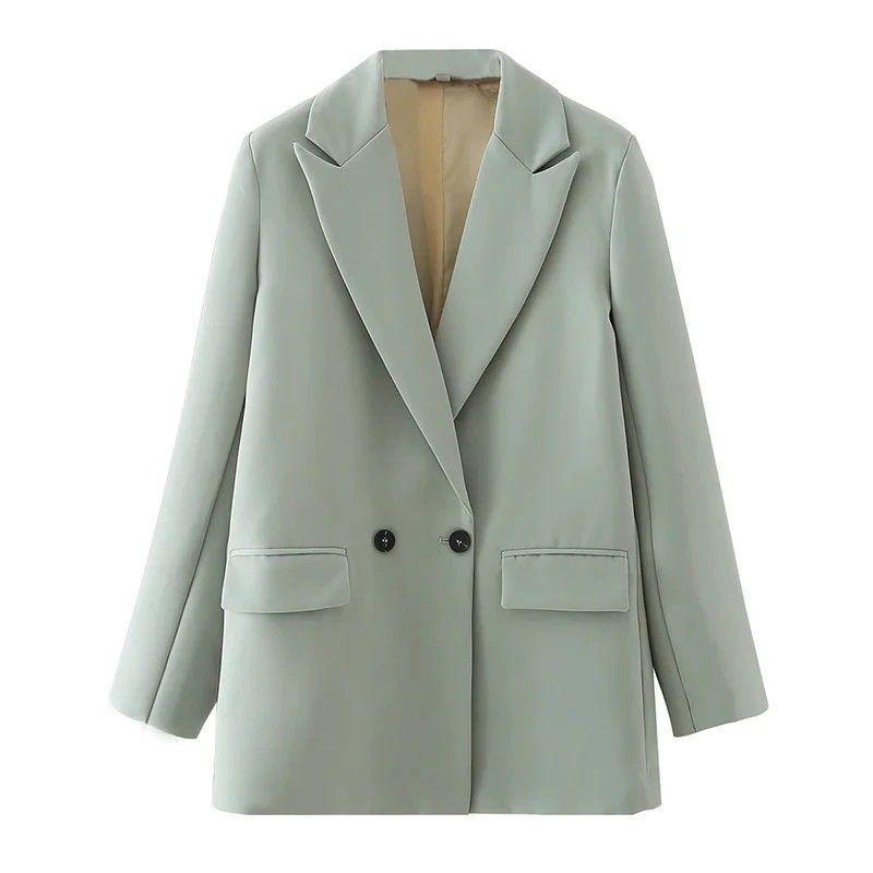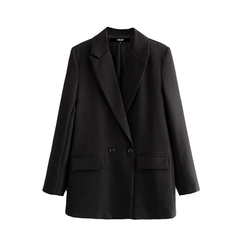 Traf Women Chic Office Lady Double Breasted Blazer Vintage Coat Fashion Notched Collar Long Sleeve Ladies Outerwear Stylish Tops