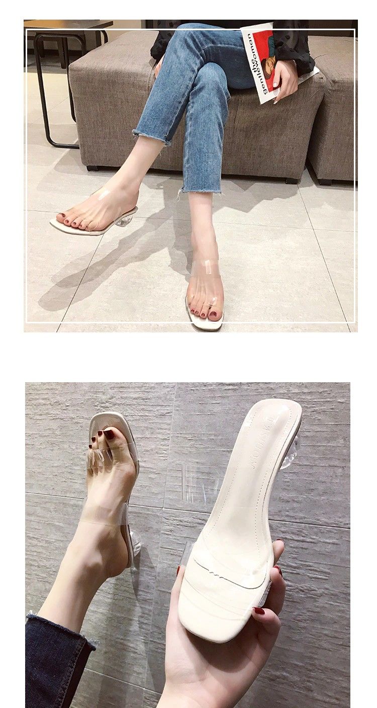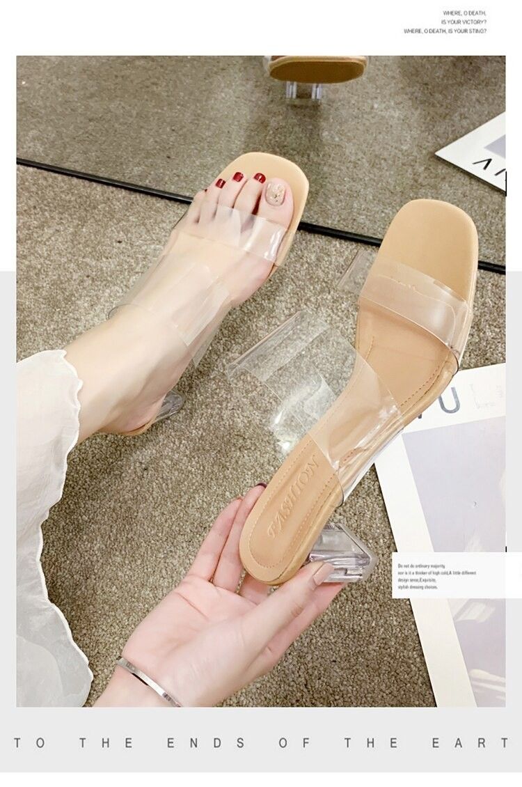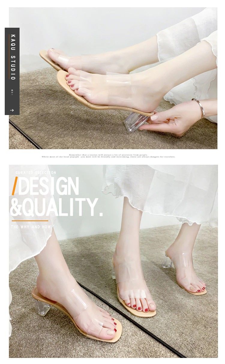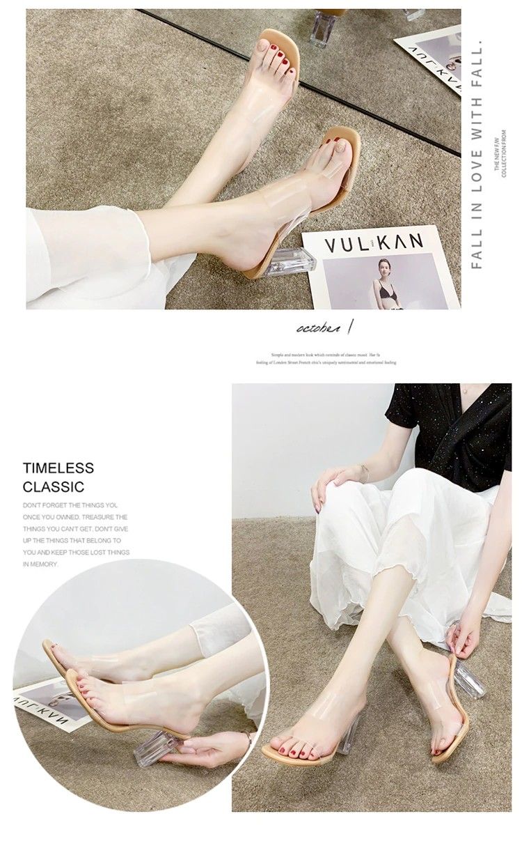 Sandales À Talons Hauts Pour Femmes, Transparents, Claires À Bout Carré Ouvert En Gelée Chaussures D'Été Escarpins, Pantoufles De Mariage