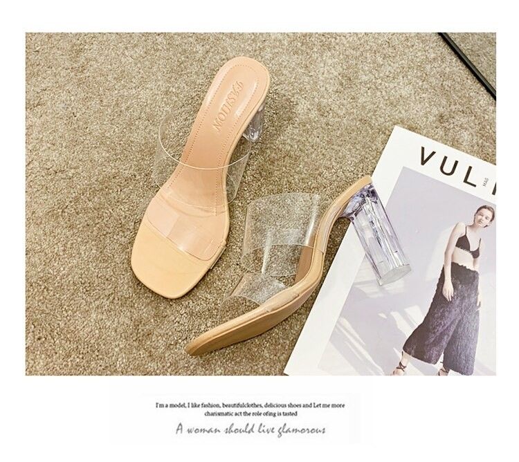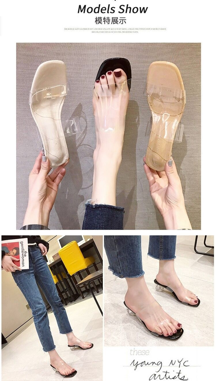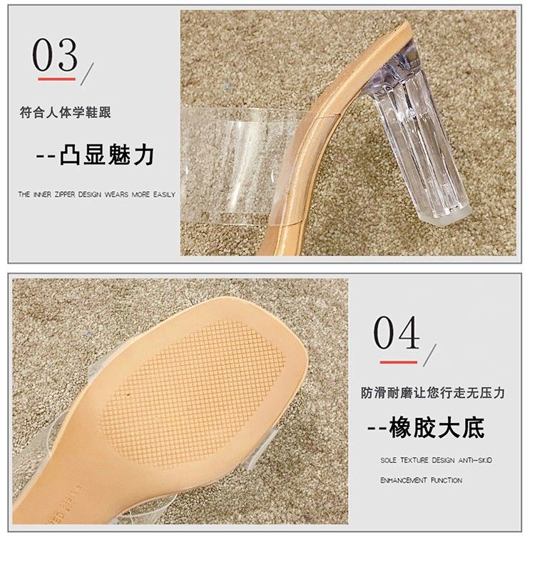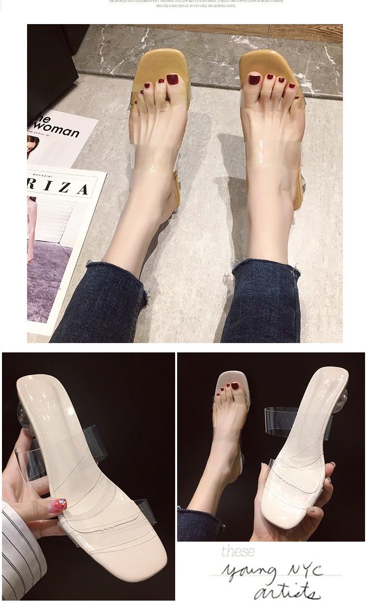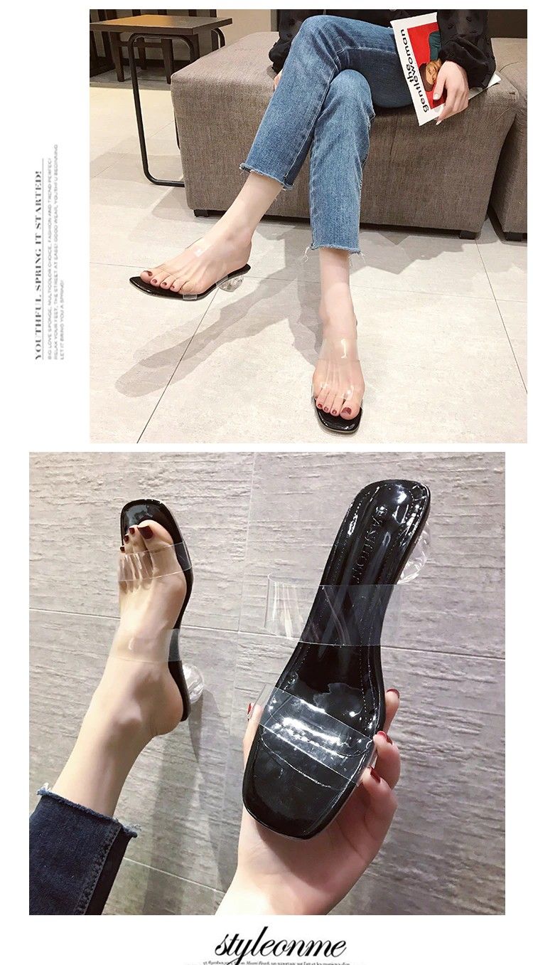 Sandales À Talons Hauts Pour Femmes, Transparents, Claires À Bout Carré Ouvert En Gelée Chaussures D'Été Escarpins, Pantoufles De Mariage