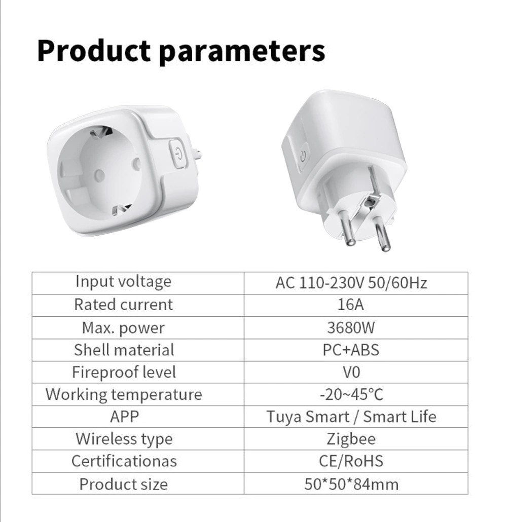 Tuya Smart Zigbee Plug 16A Eu Outlet 3680W Power Meter Compatiable With Alexa And Tuya Hub
