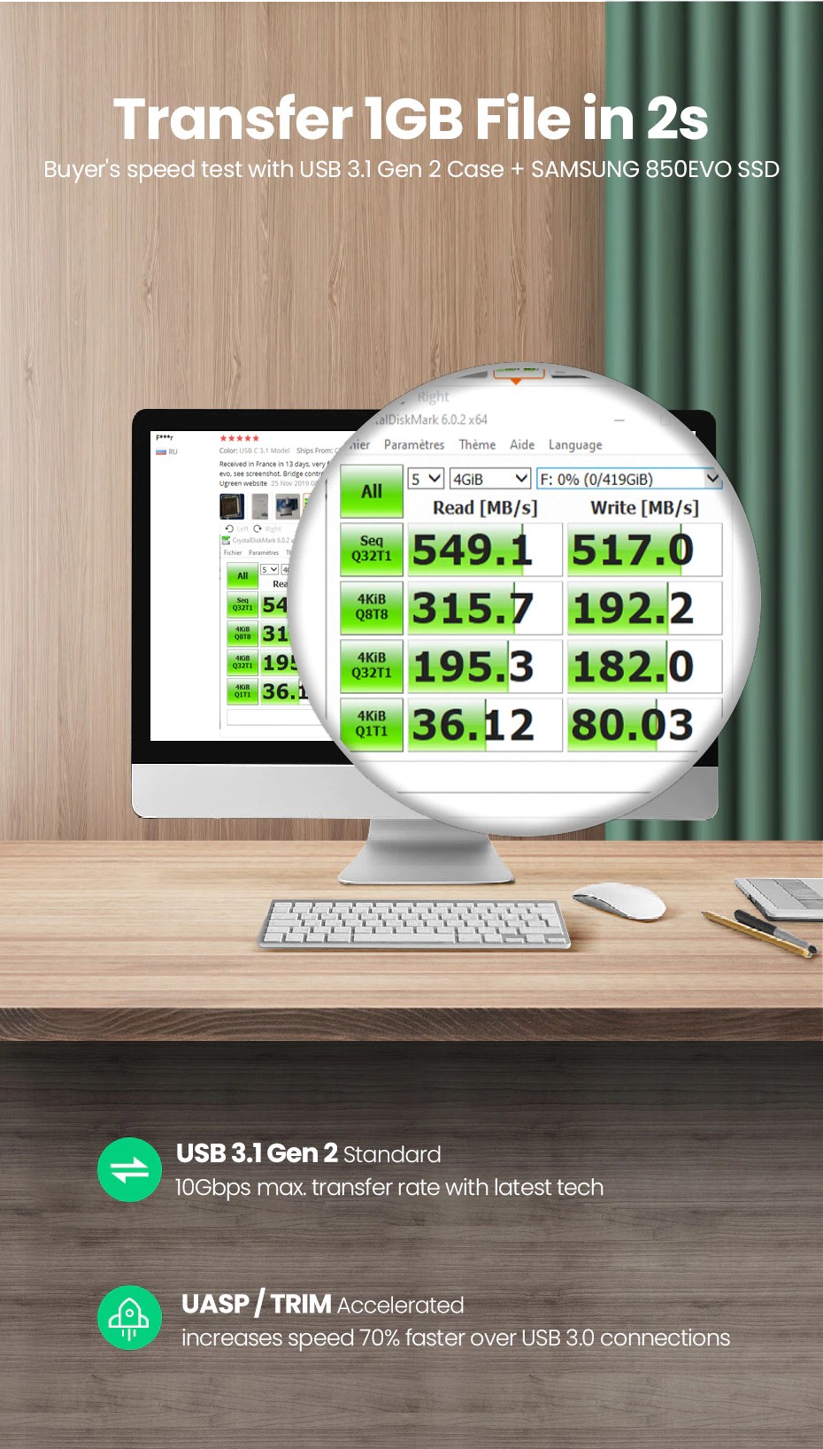 Tested Data with USB 3.1 Gen 2 Case + SAMSUNG 850EVO SSD