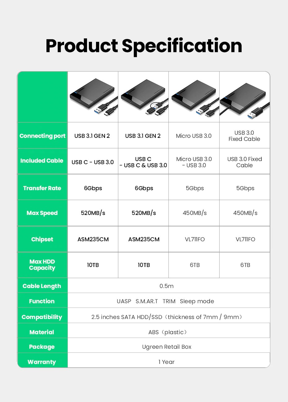 Ugreen Hdd Case 2.5 Sata To Usb 3.0 Adapter Hard Drive Enclosure For Ssd Disk Hdd Box Type C 3.1 Case Hd External Hdd Enclosure