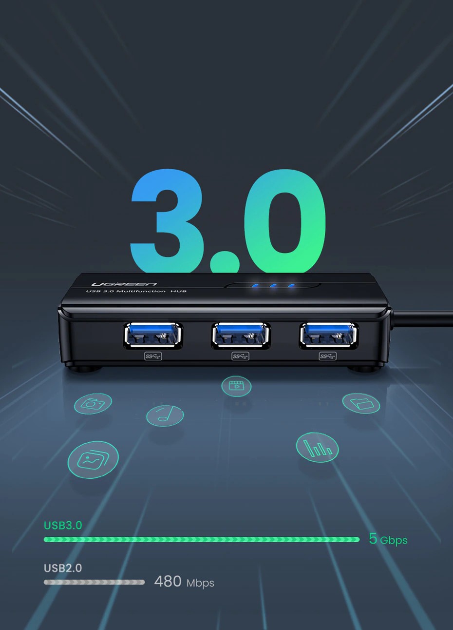 1. Extend 3 ports USB 3.0, convenient for your flash drive, keyboard, mouse, camera, printer, HDD etc.;