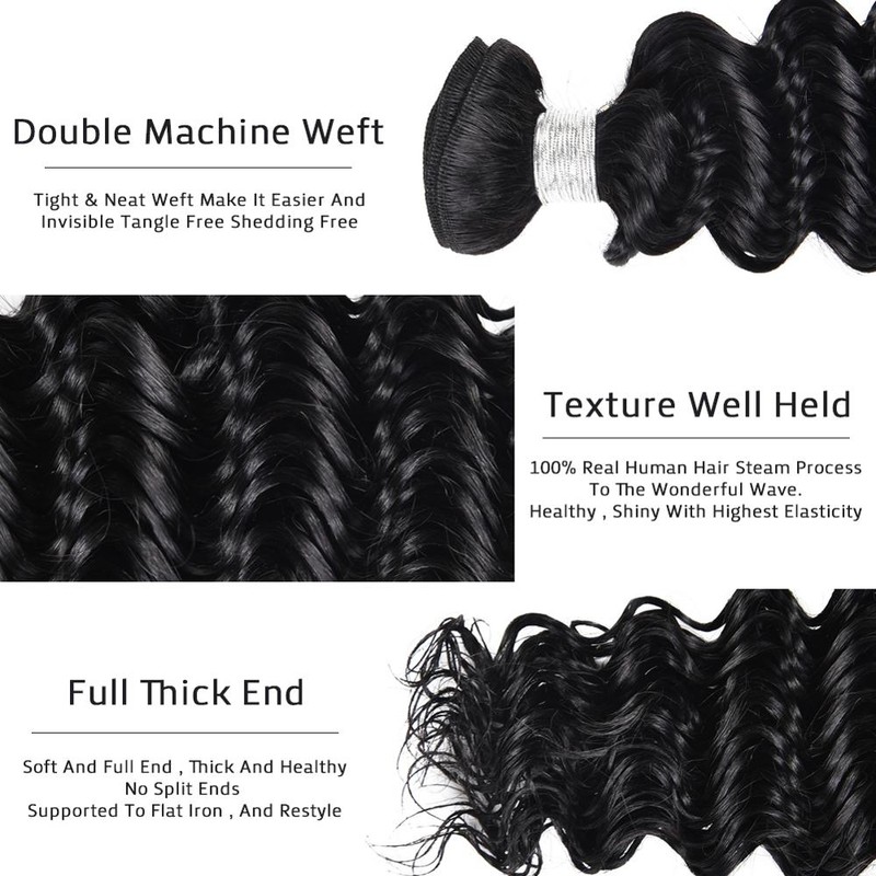 Una 3 Bundles Human Deep Wave 8&Quot;-26&Quot; Low Ratio Remy Bundles 100% Human Bundles 100G Natural Color