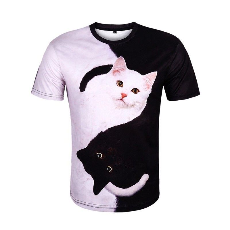 2020 fashion 3D printing: black white cat print T-shirt