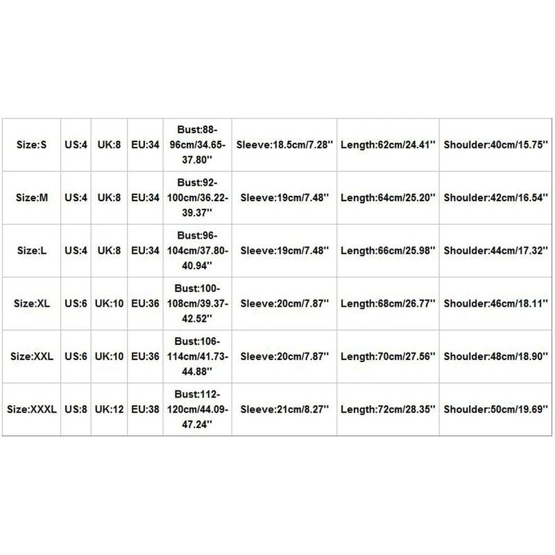| Size | US | UK | EU | Bust | Sleeve | Length | Shoulder |