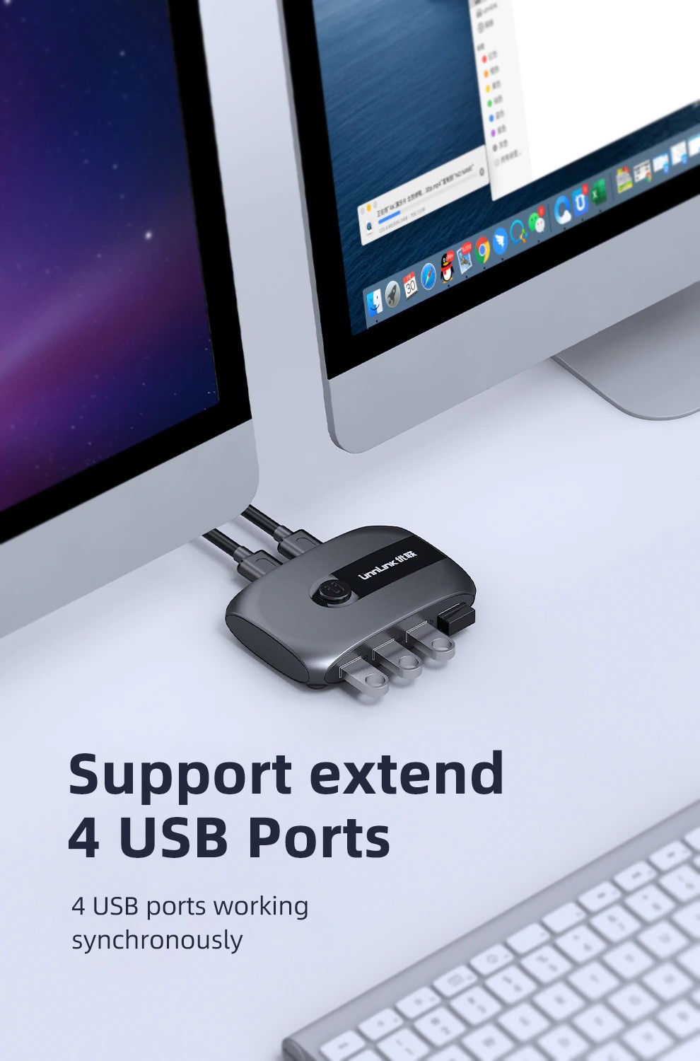 Unnlink Usb Kvm-Switch Usb 3, 0 2, 0 Switcher Mit Extender 2 Computer Teilen 4 Usb Hub Ports Für Tastatur Maus Drucker U Disk